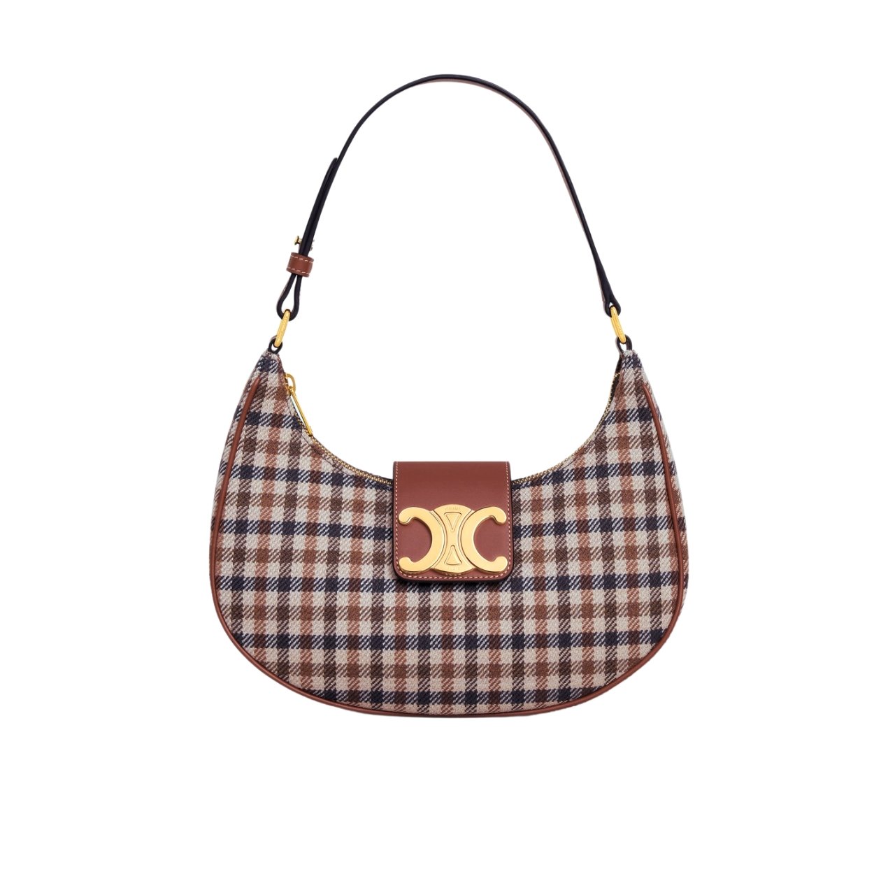 Celine Ava Triomphe Bag In Tartan Textile And Calfskin Medium 24Cm 114492Fyd 14Ml