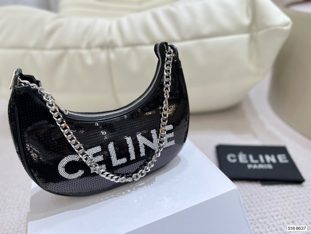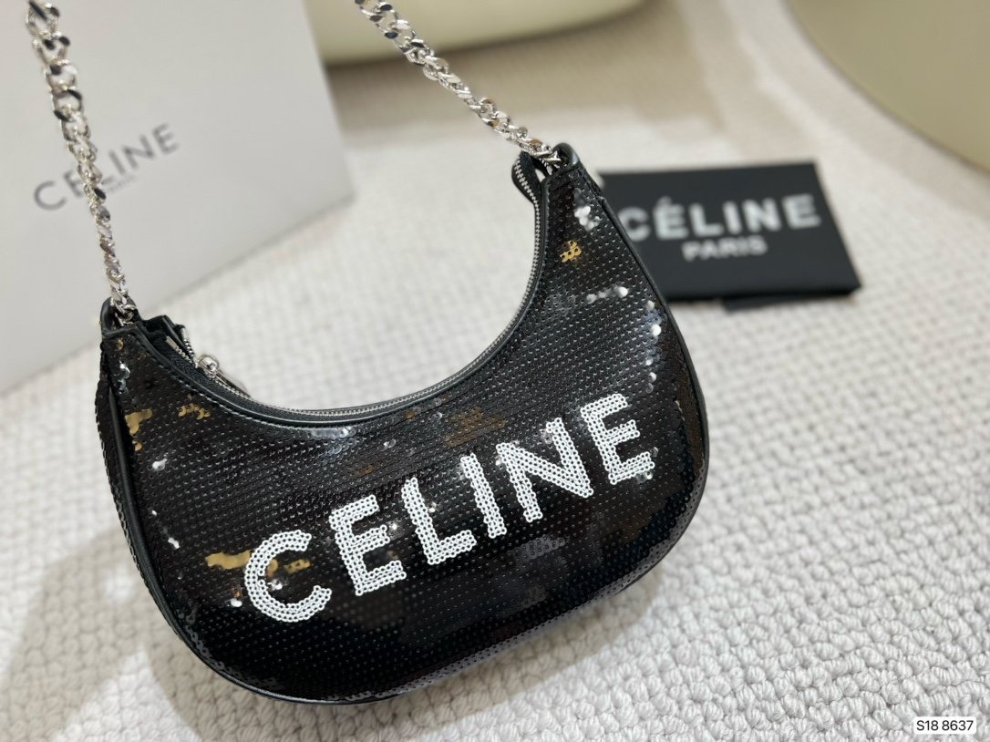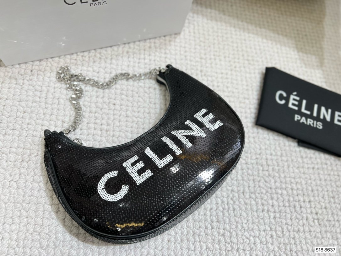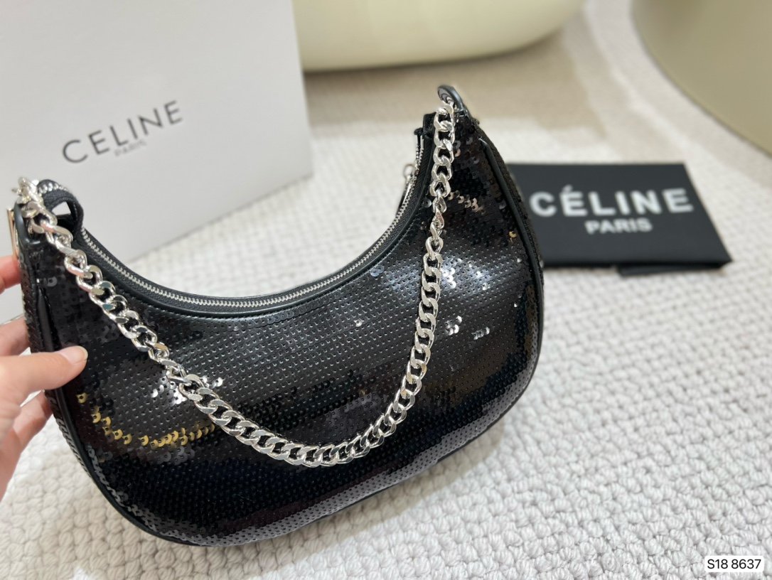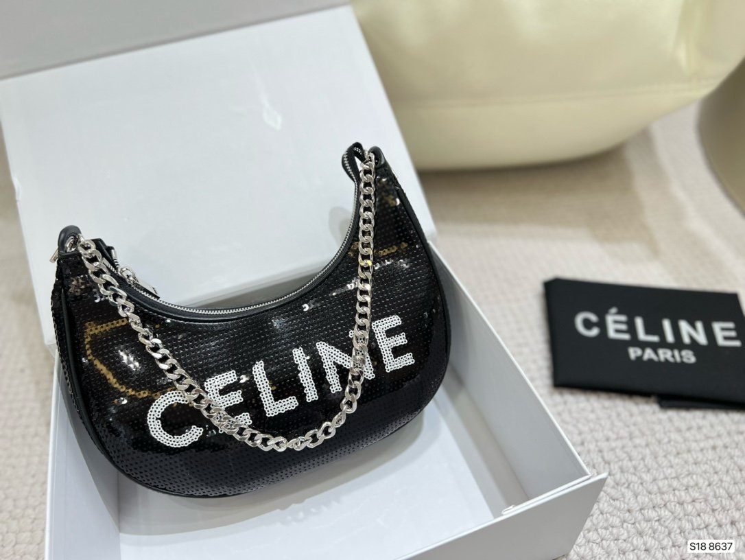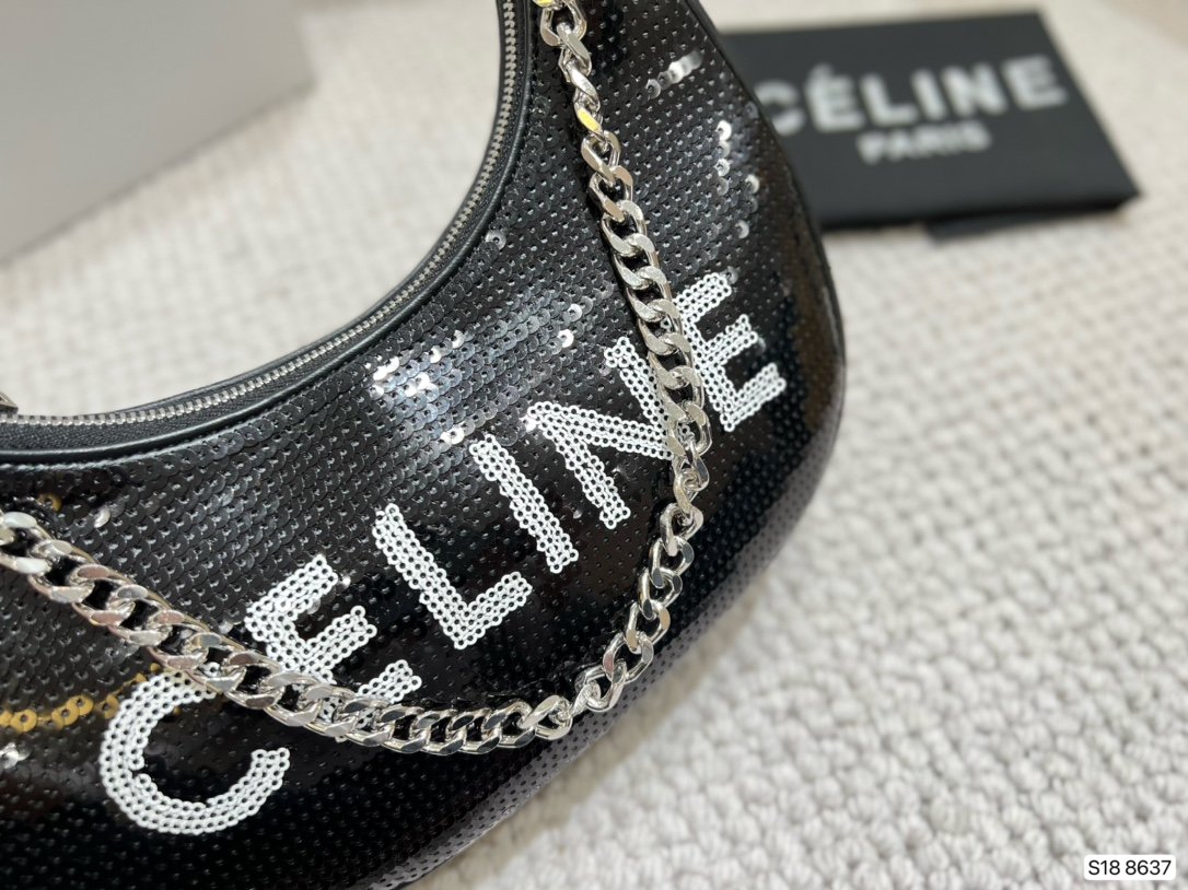 Celine Medium Ava Chain In Sequins With Celine Black 199583Enq38Aw