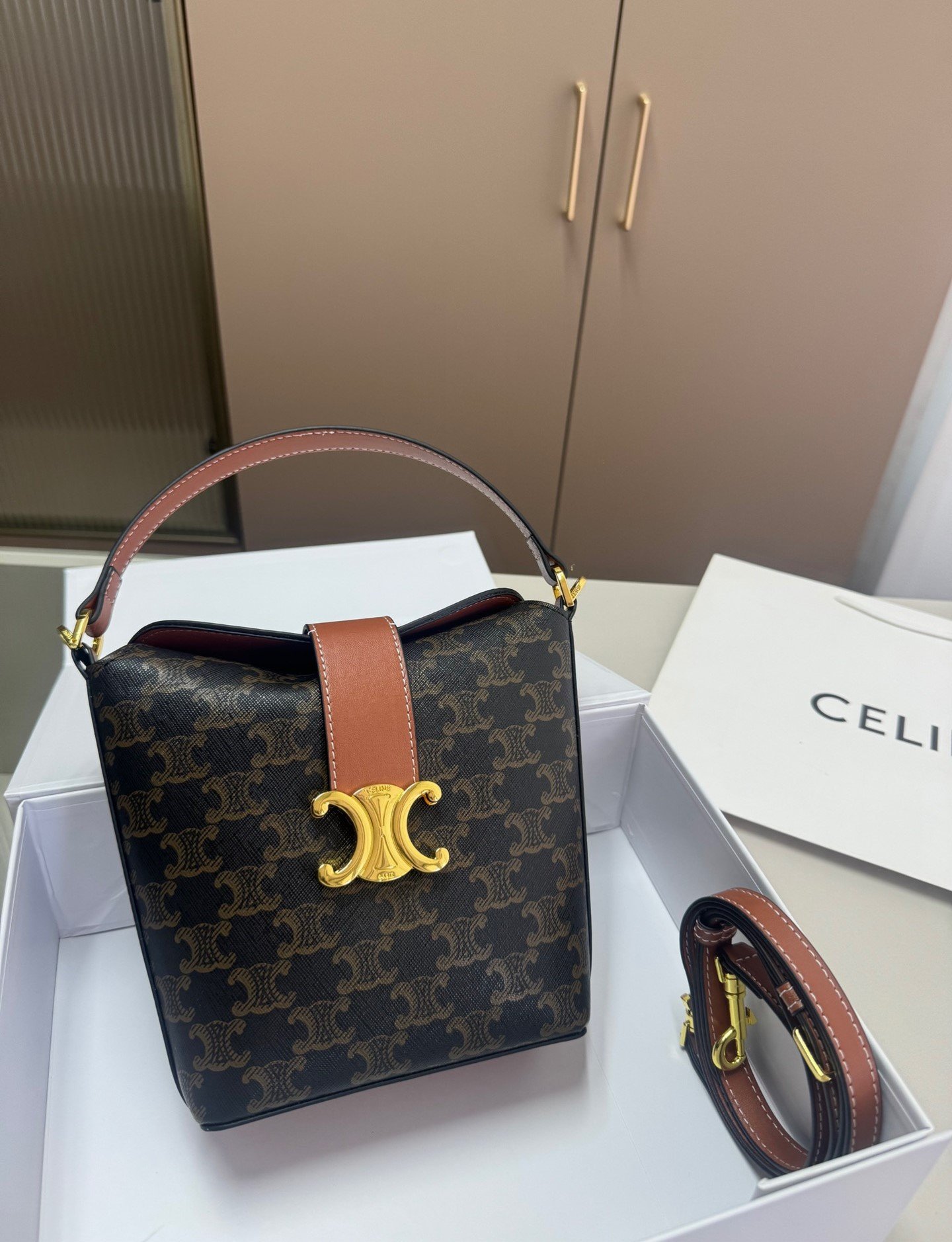 Celine Mini Bucket Triomphe In Triomphe Canvas 17Cm
