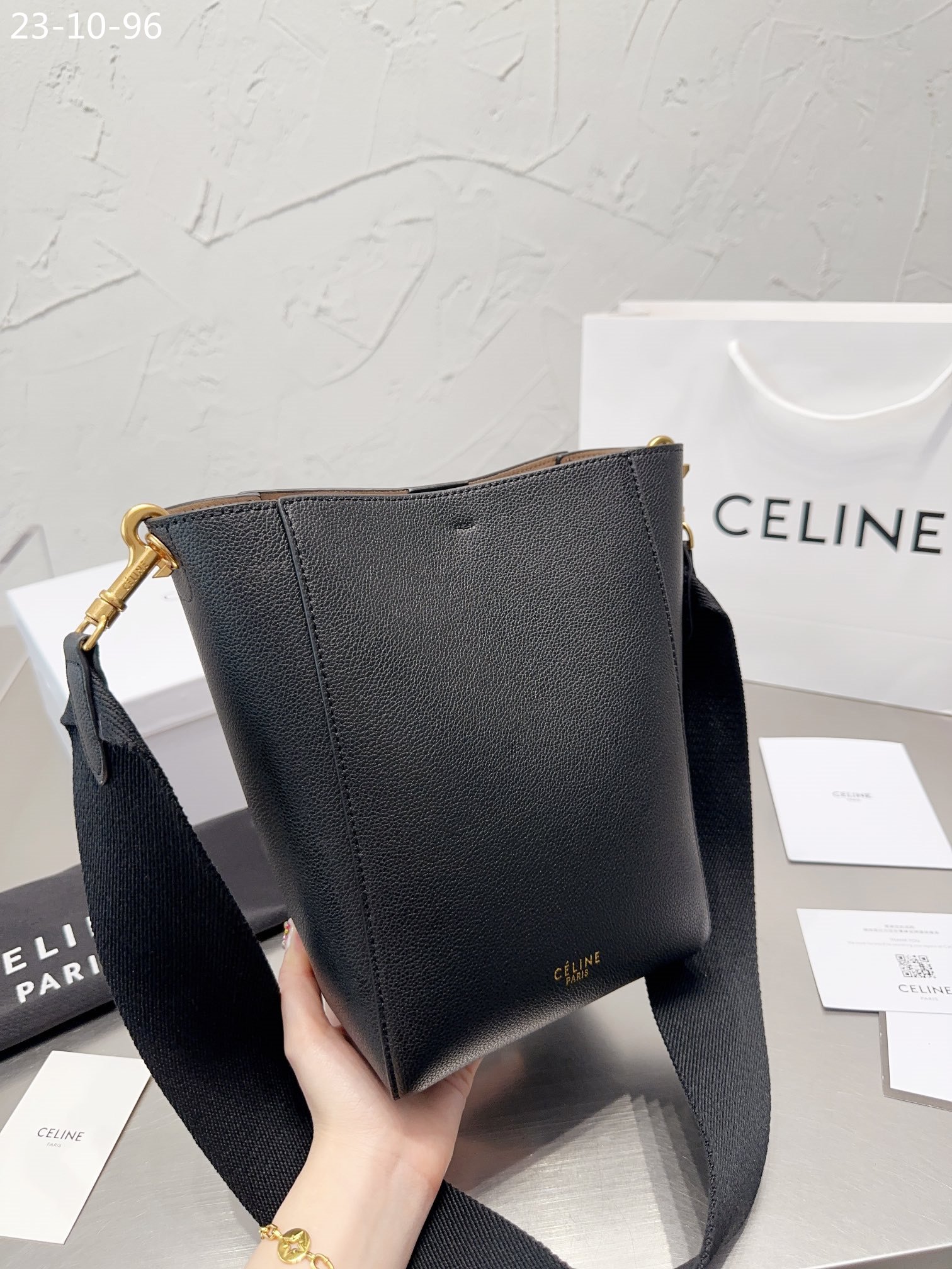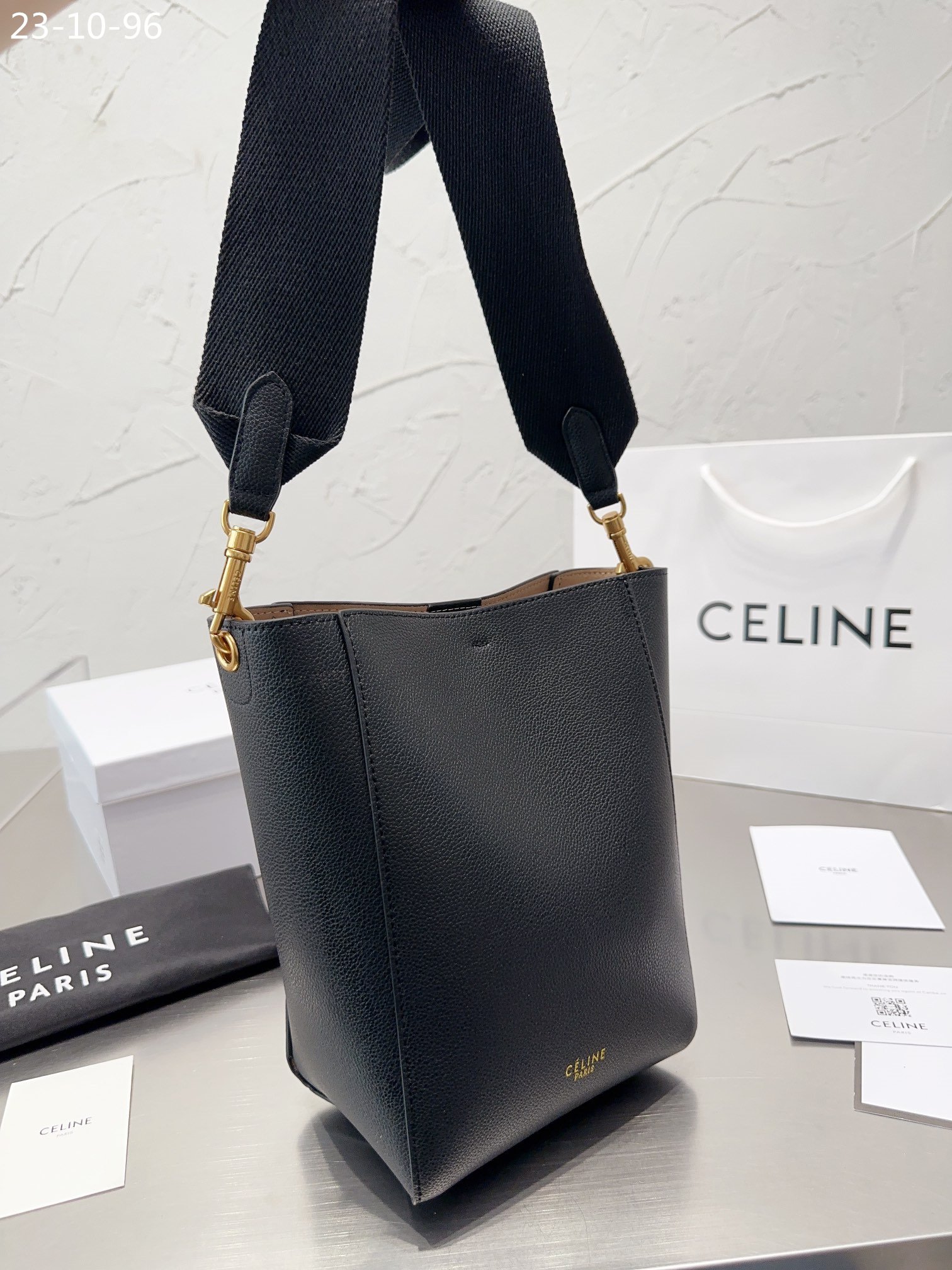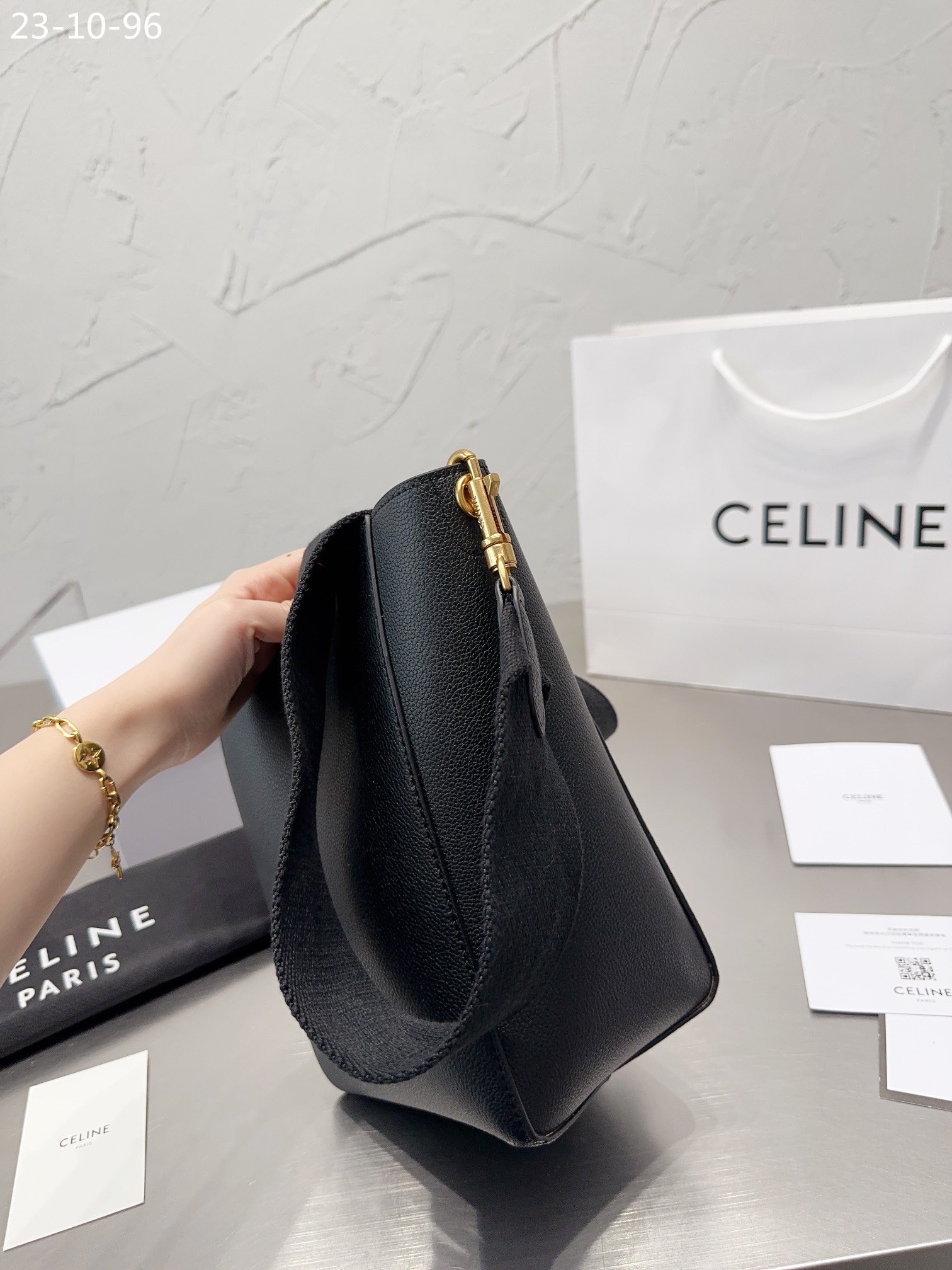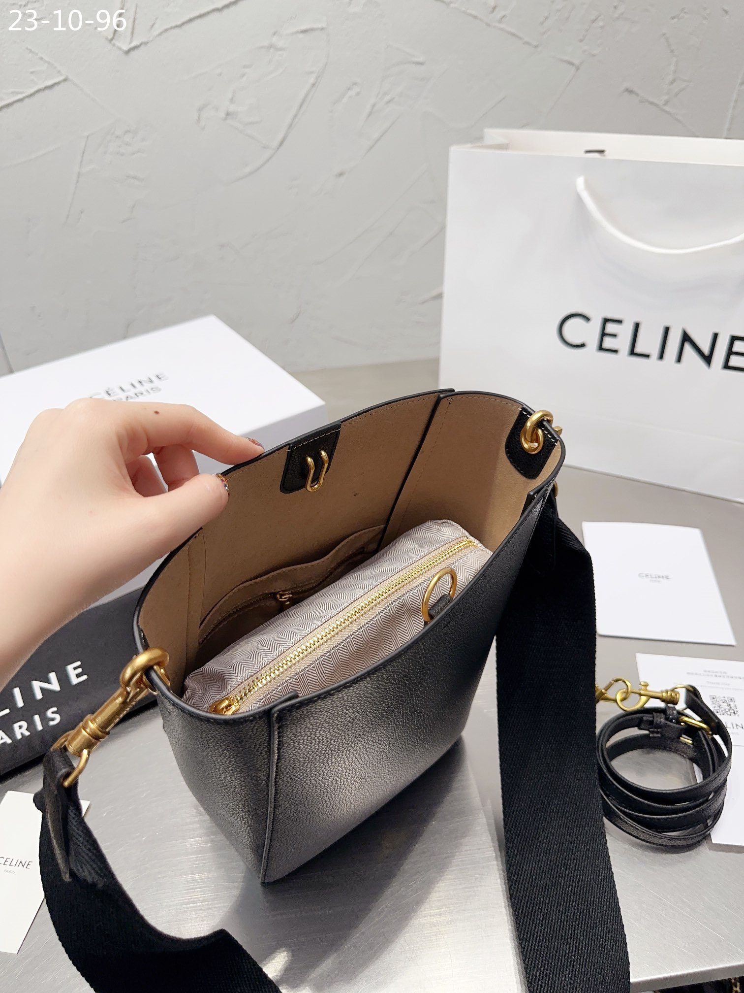 1:1 REPLICA BAGS Measurements: 17 x 26 cm / 6.7 x 10.2 inches Black Calfskin Calfskin Lining Gold Metal Hardware Shoulder Carry Inner Hook Closure Inner Flat And Zipped Pockets Removable Wool Strap