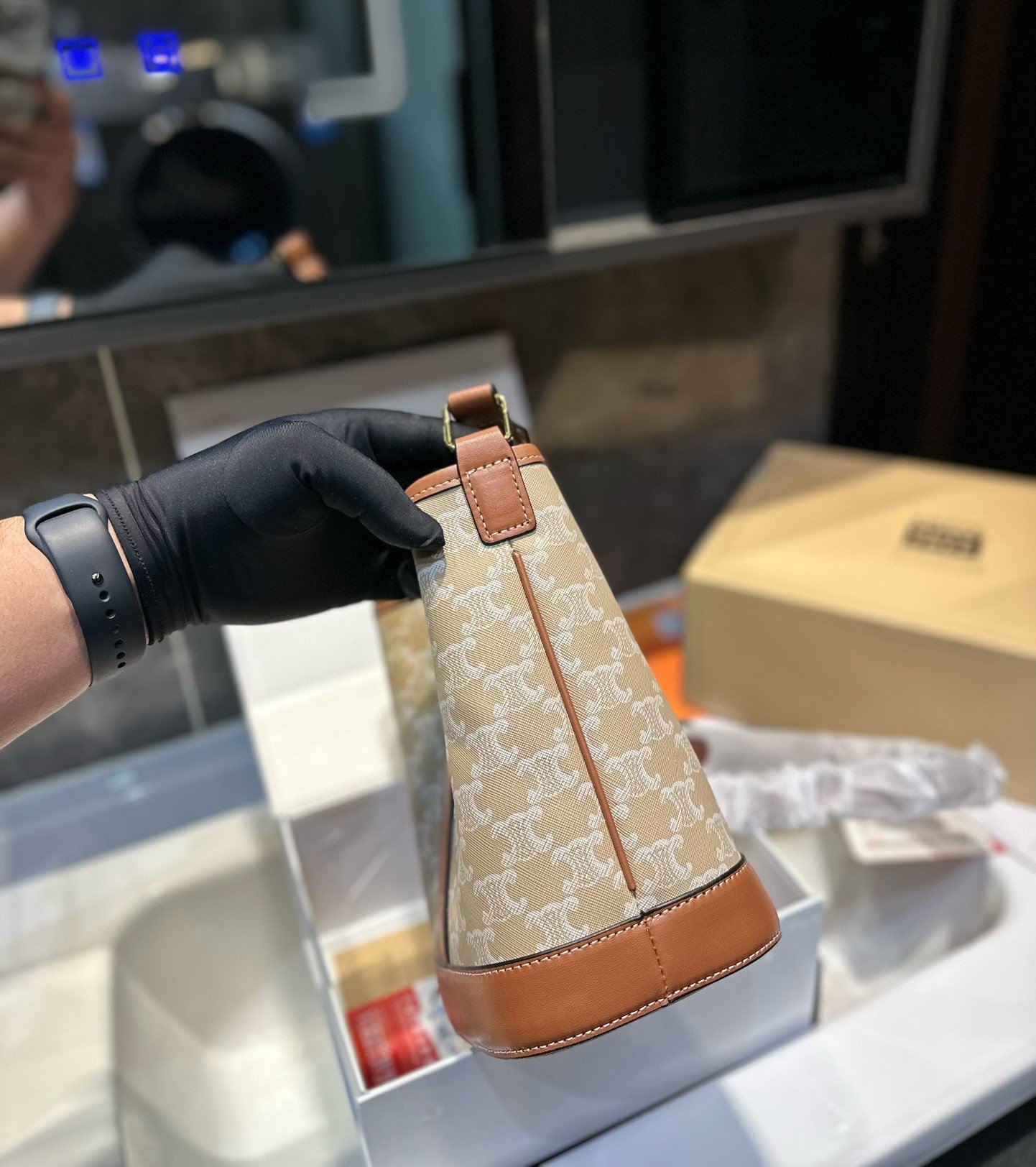 - Triomphe Canvas, Trimmings In Calfskin