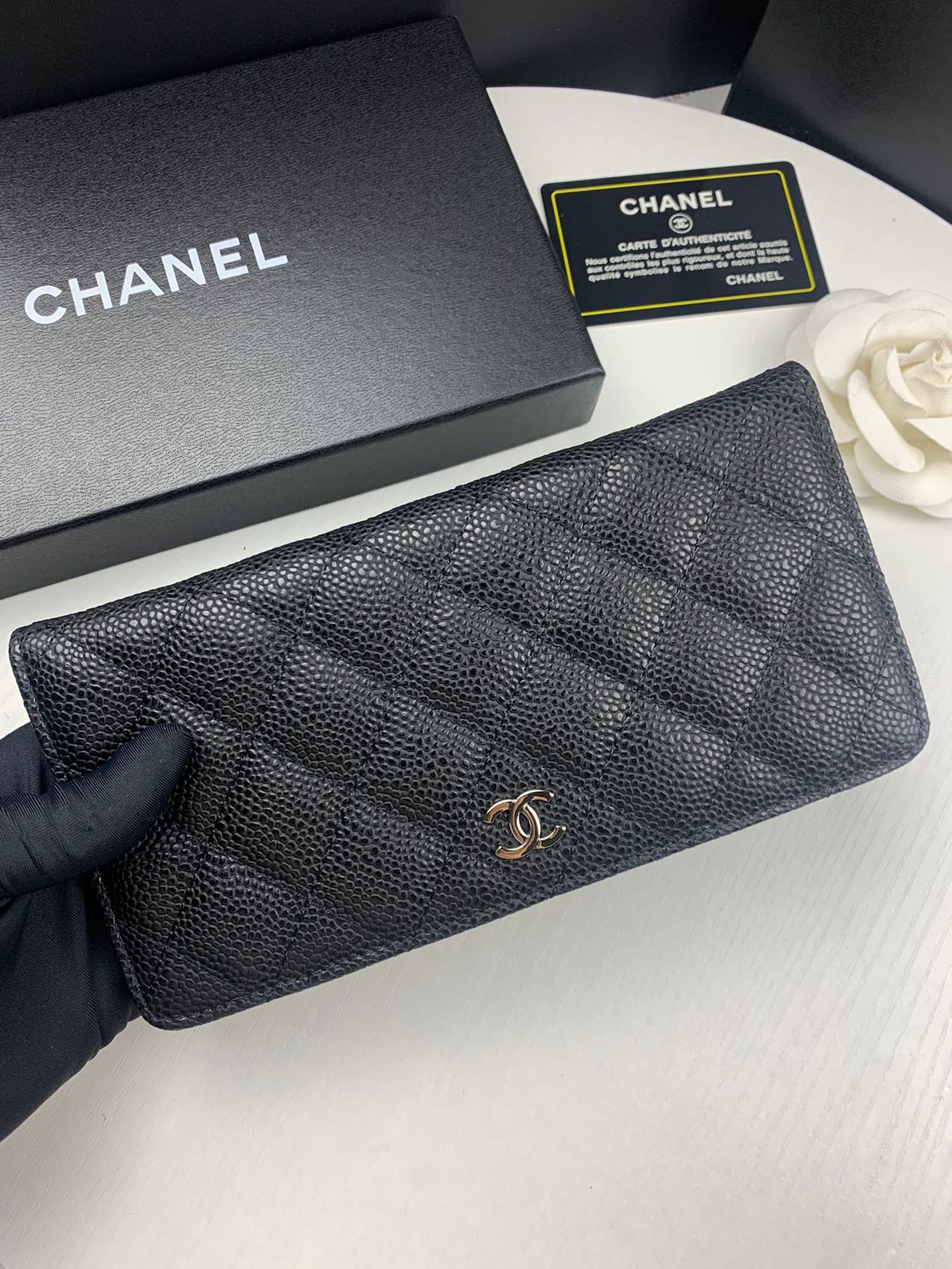 Chanel Black Caviar Leather Classic Long Flap Wallet 19.5Cm
