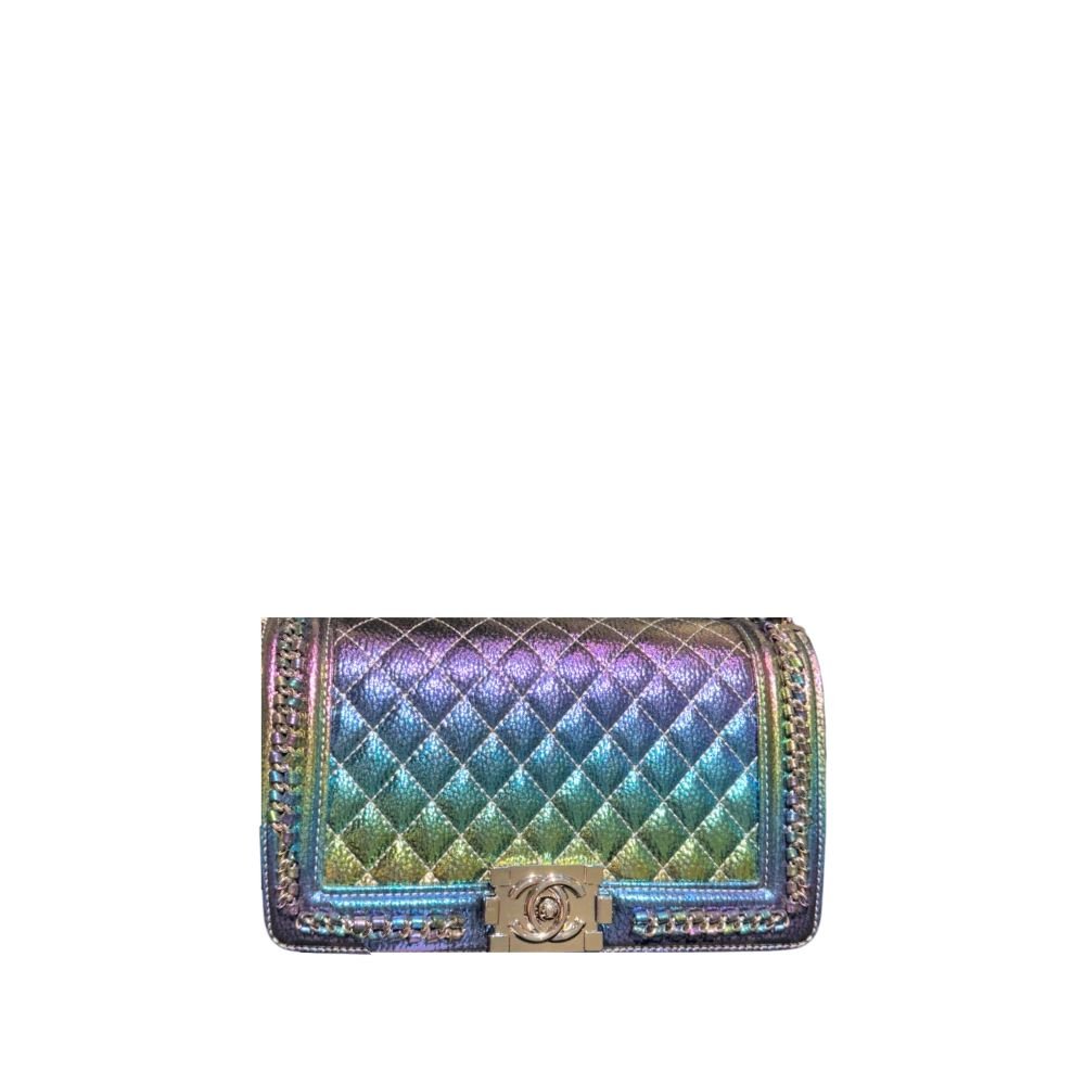 Chanel Boy Beauty Chain Around Bag Silver Tone Hardware Gradient Multicolor 26Cm