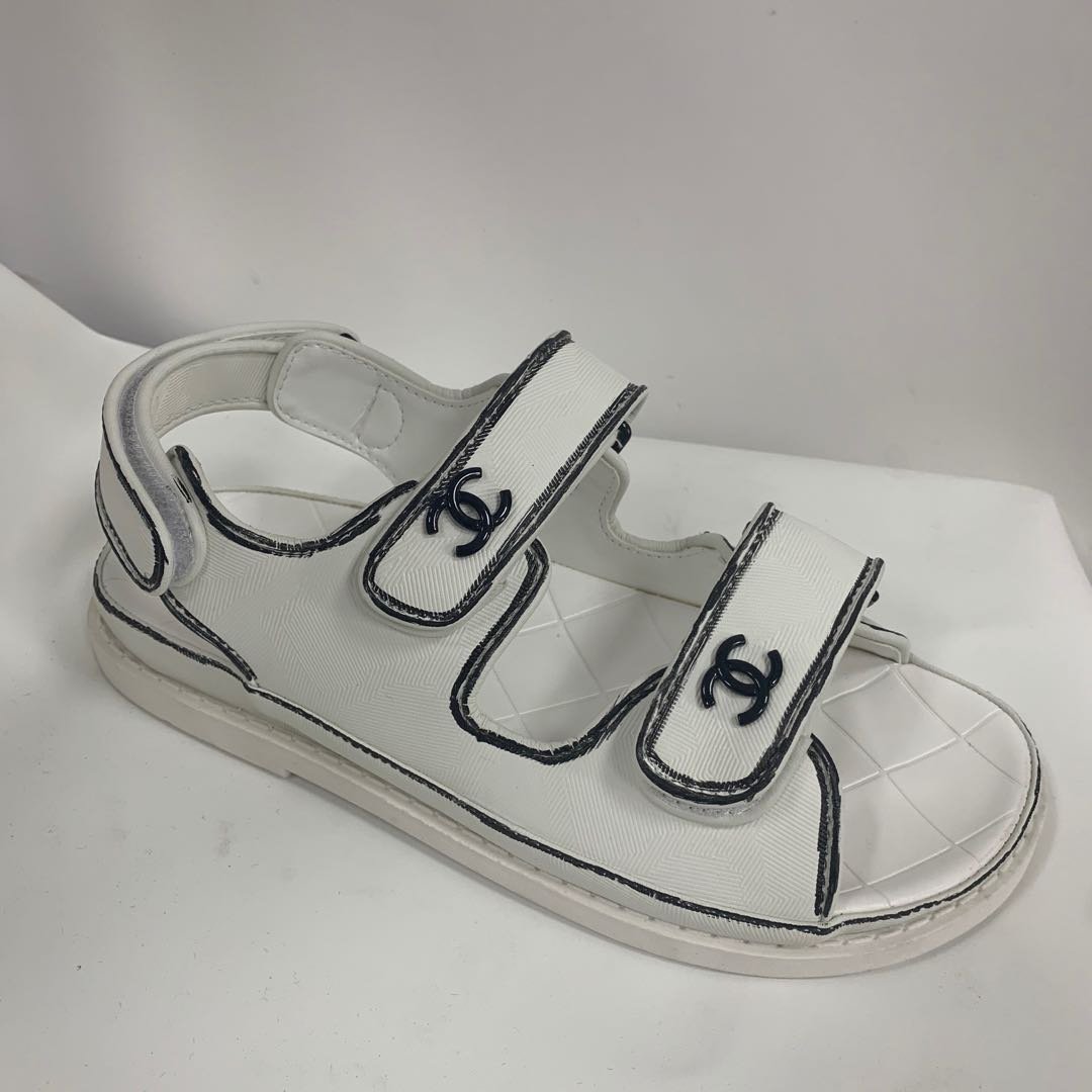 Chanel Calfskin Printed Velcro Dad Sandals White Black