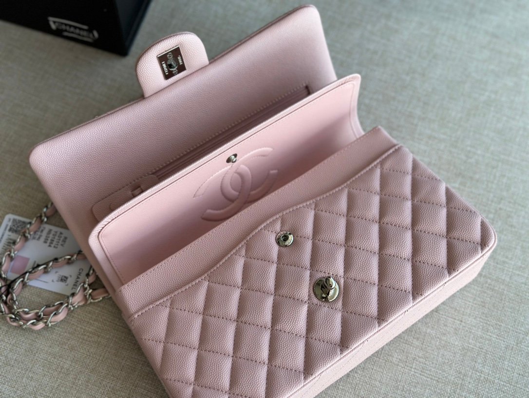Chanel Classic Double Flap Bag Caviar Silver Hardware Light Pink 25Cm
