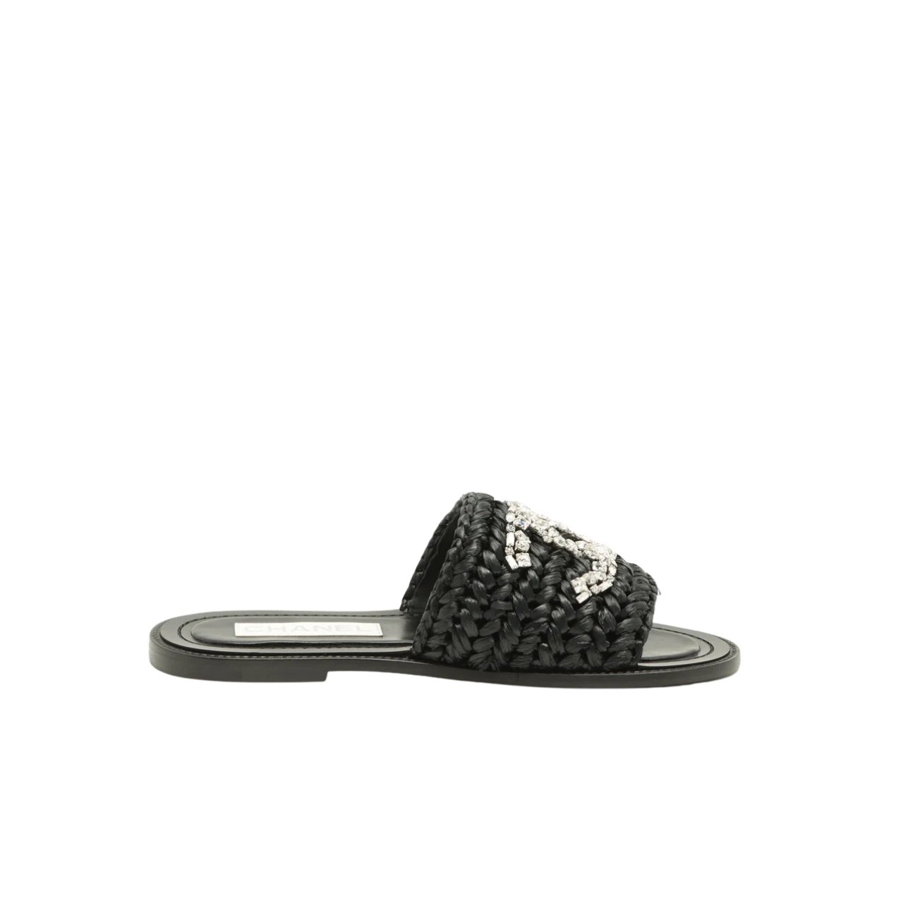 Chanel Coco Mark 23Ss Straw And Leather Sandals
