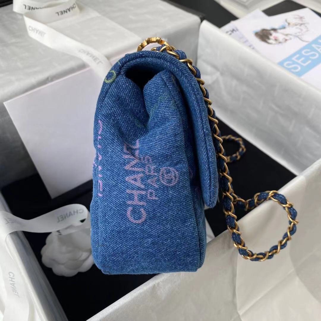 Chanel Large Flap Bag Blue &Amp; Multicolor As3135