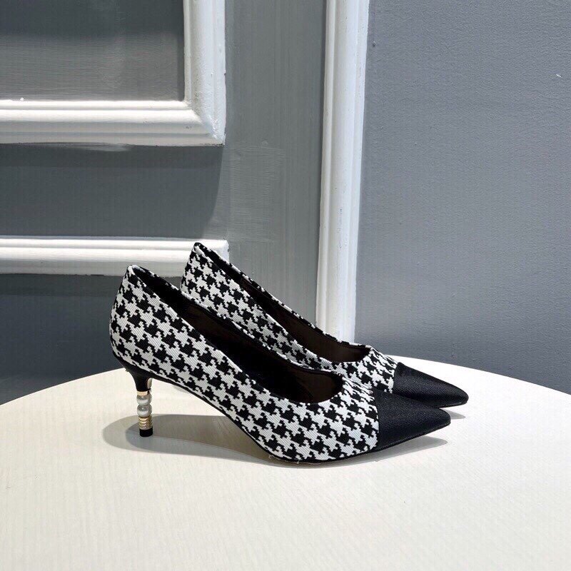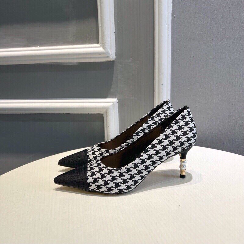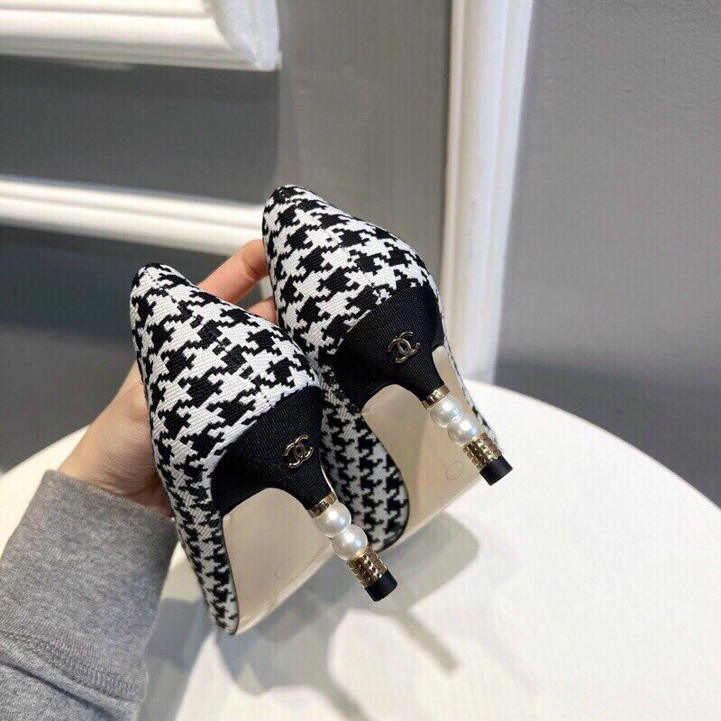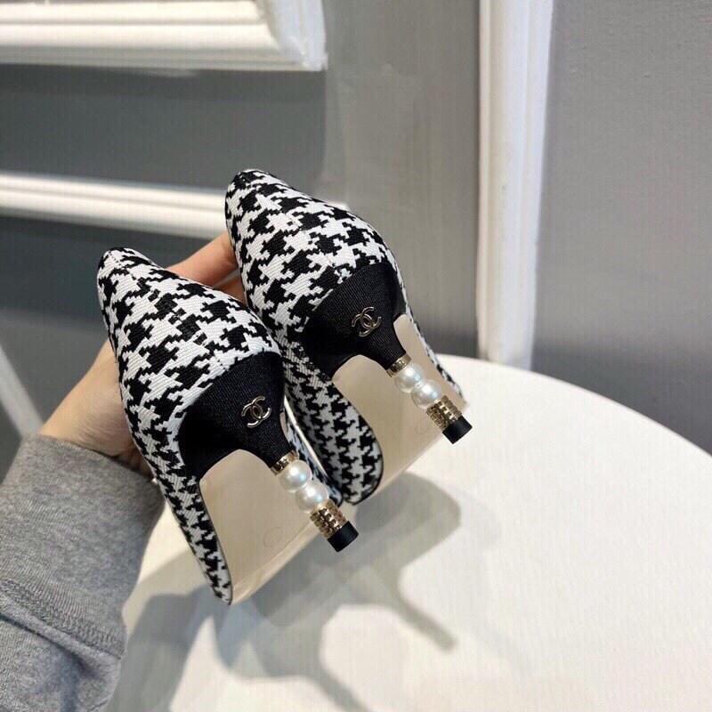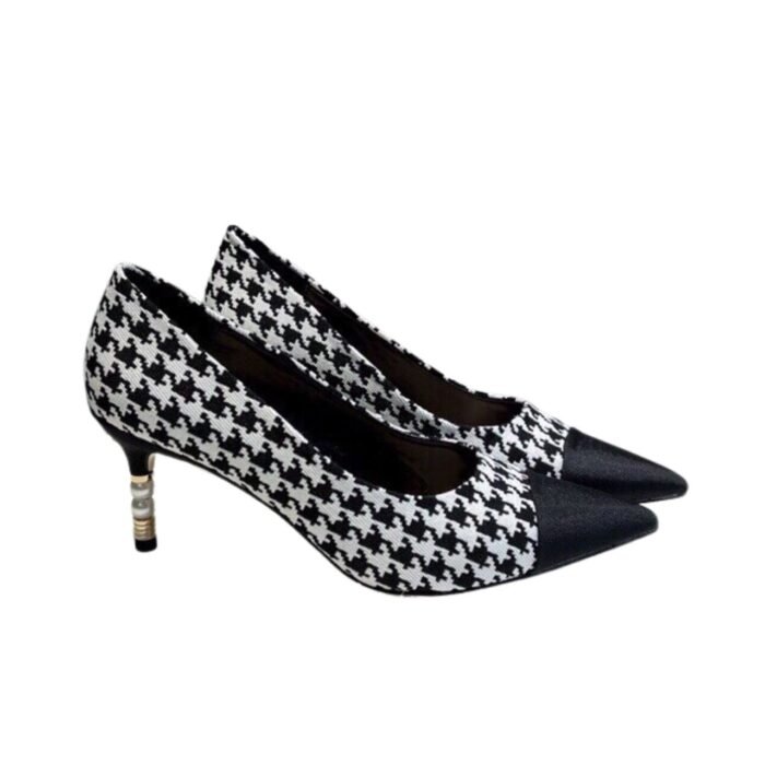 Be the first to review “Chanel Pearl Embellished Heel Pumps Houndstooth Pattern In Black And Ivory”