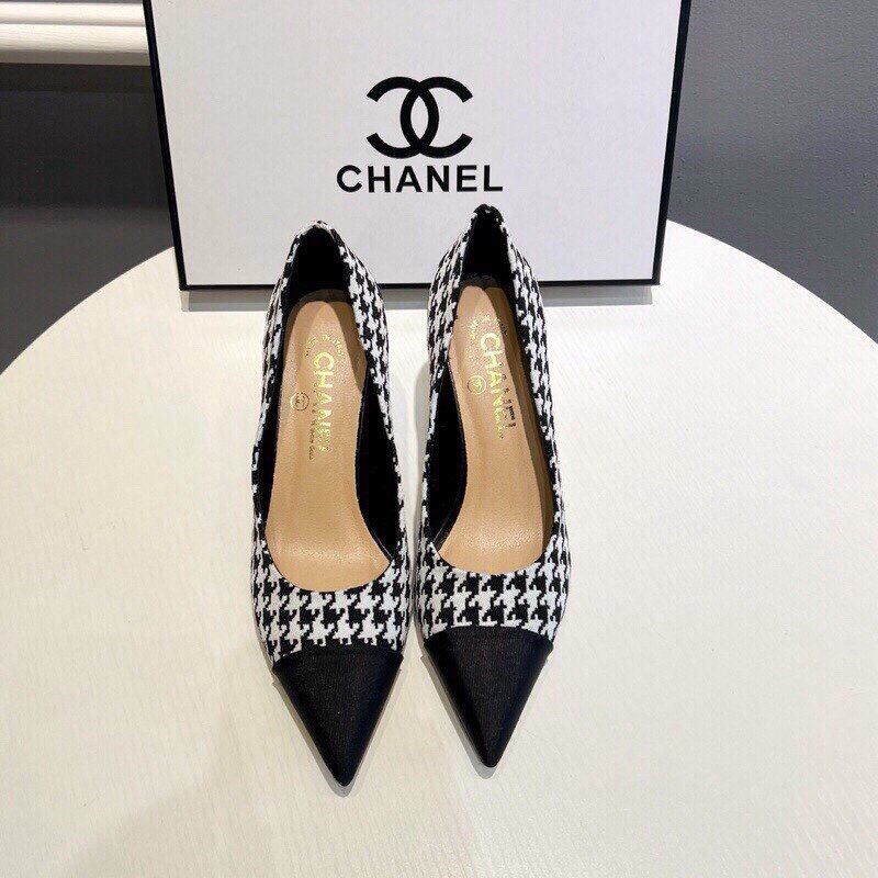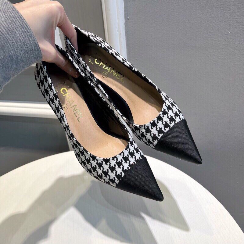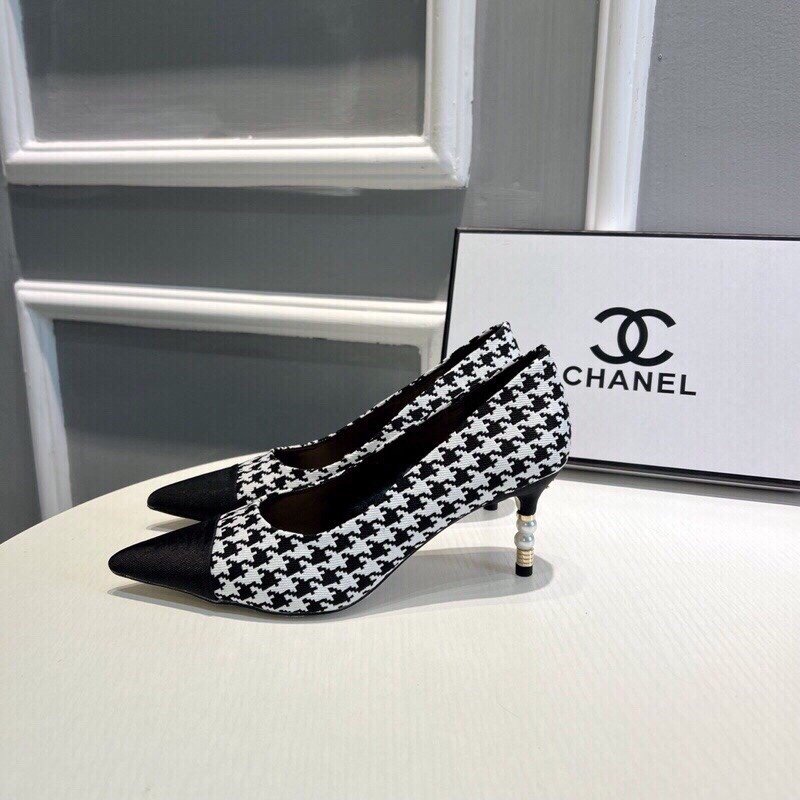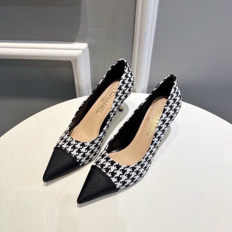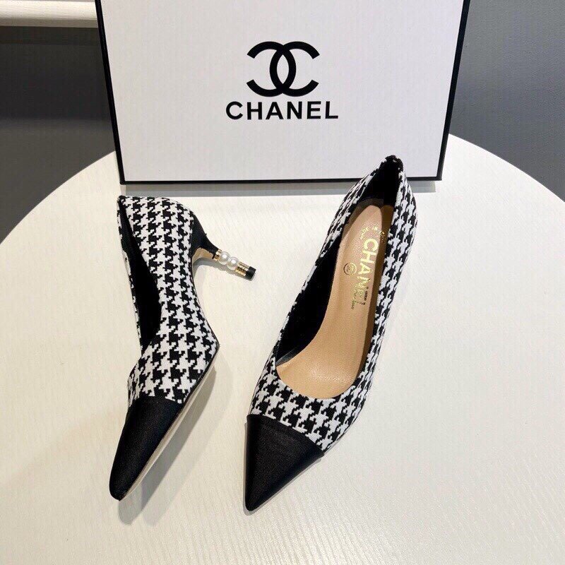 Be the first to review “Chanel Pearl Embellished Heel Pumps Houndstooth Pattern In Black And Ivory”