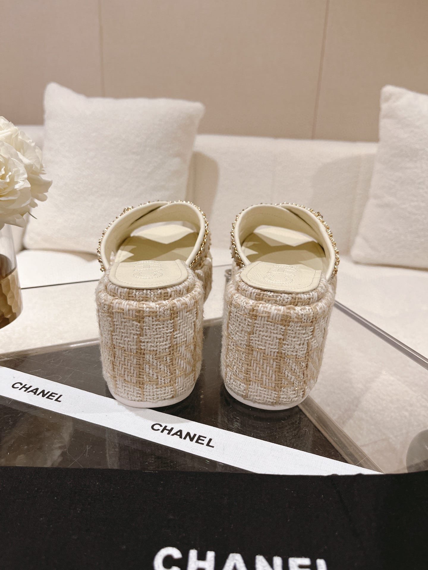 Chanel Tweed Cc Sandal White