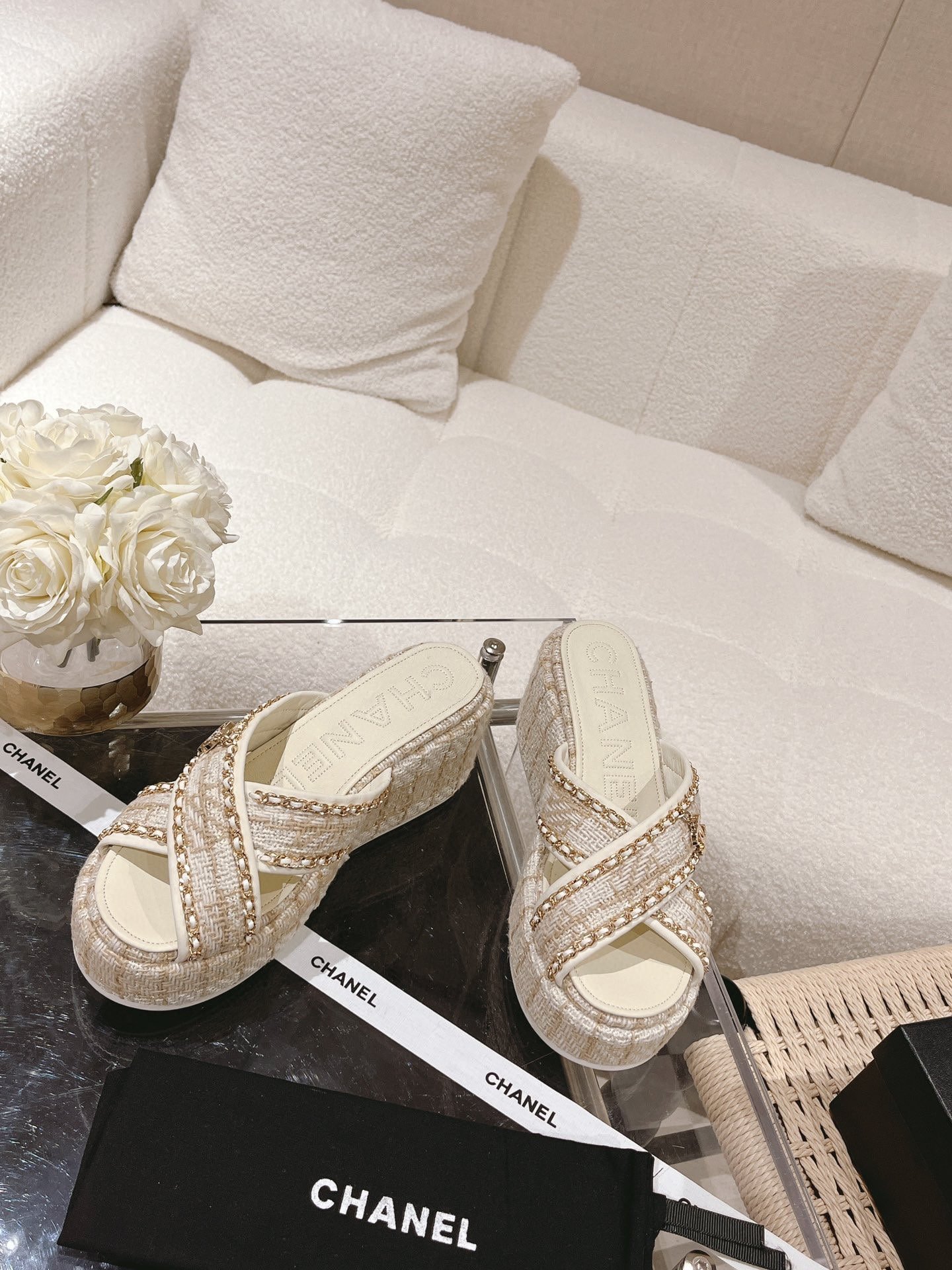 Be the first to review “Chanel Tweed Cc Sandal White”