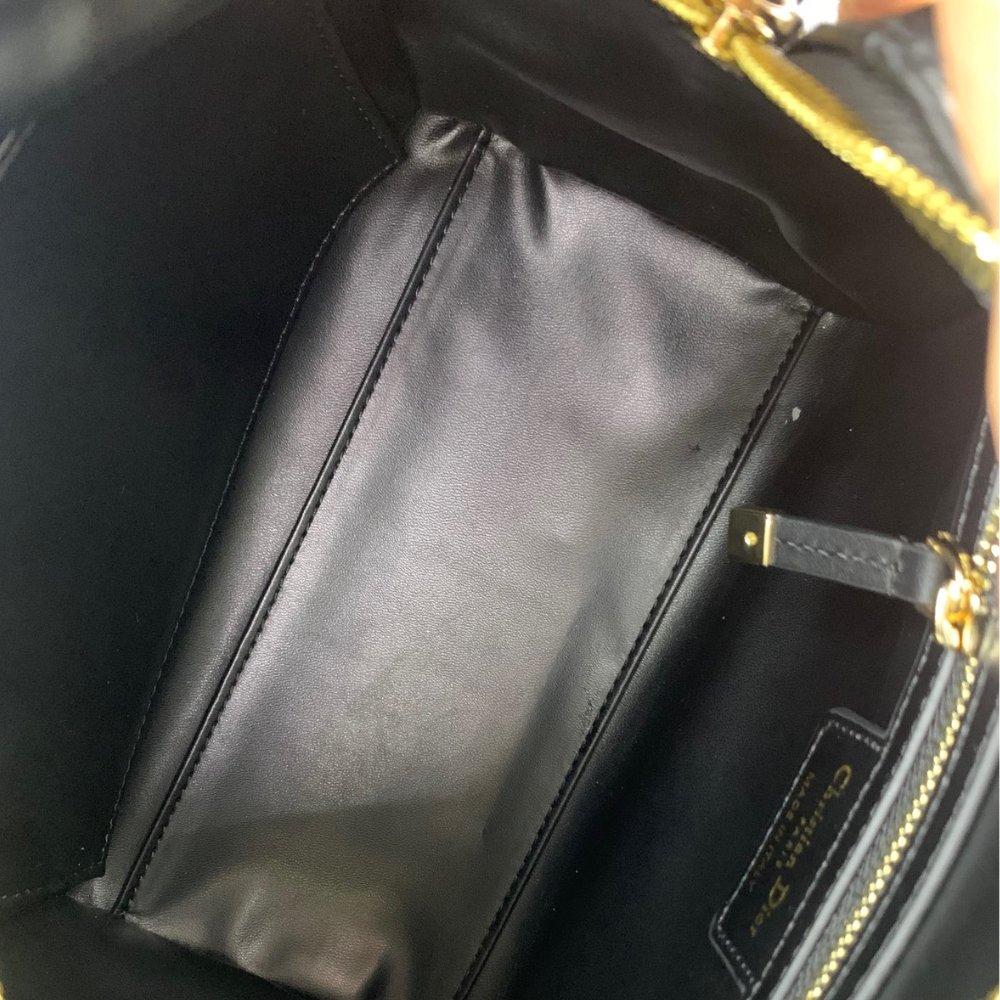 • Zip closure with padlock engraved with Christian Dior Paris