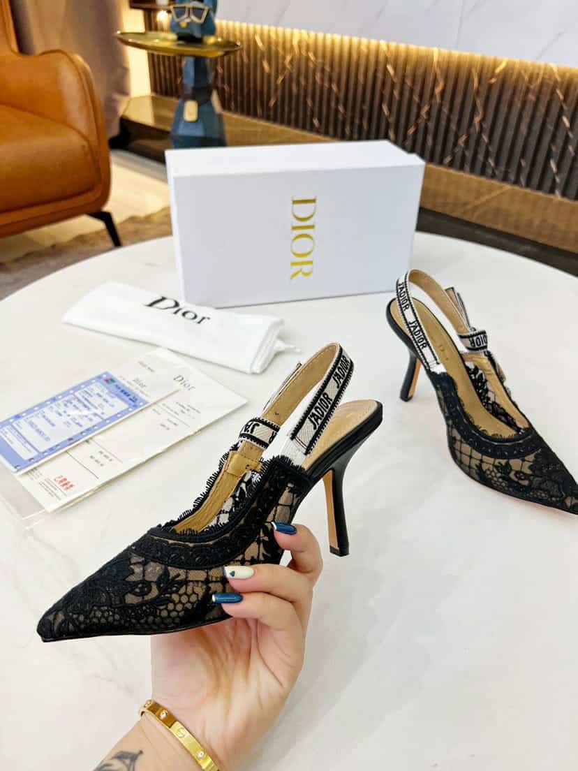 Be the first to review “Dior J’Adior Slingback Pump Transparent Mesh Embroidered With Dior Roses Motif Comma Heel Black Kdv028Fll S900”