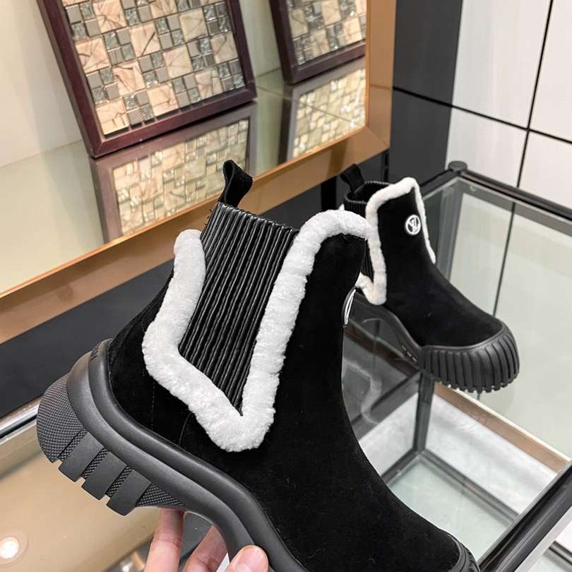 1:1 Replica Shoes Suede calfskin and shearling Elastic fabric sides Rubber sole LV Circle logo Hollow pattern embellished with Vuitton logo