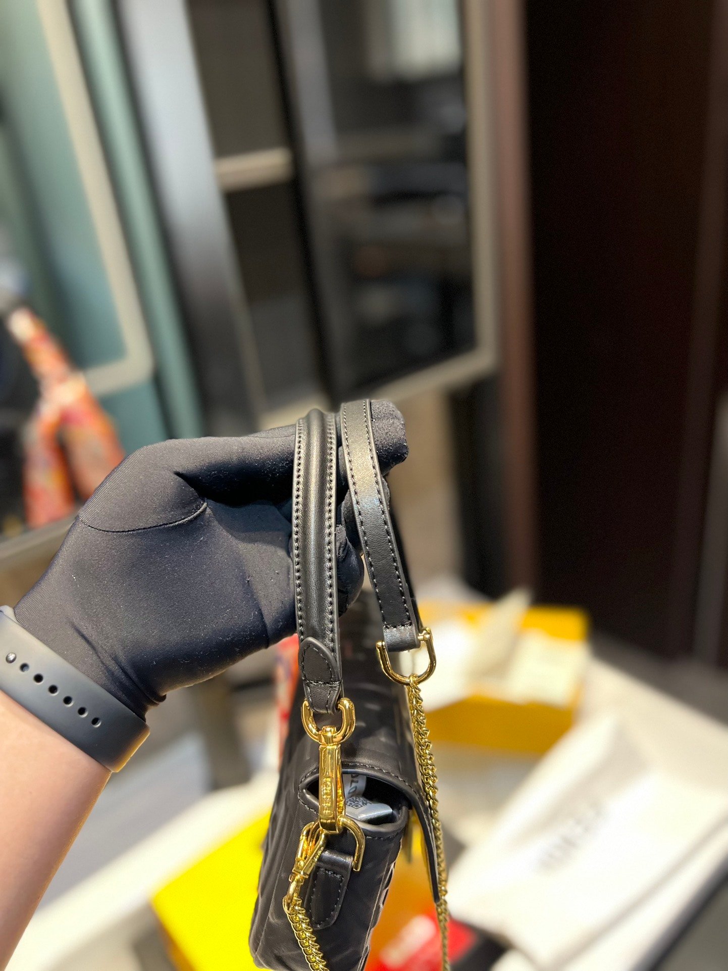 • The handle and chain shoulder strap, both detachable.