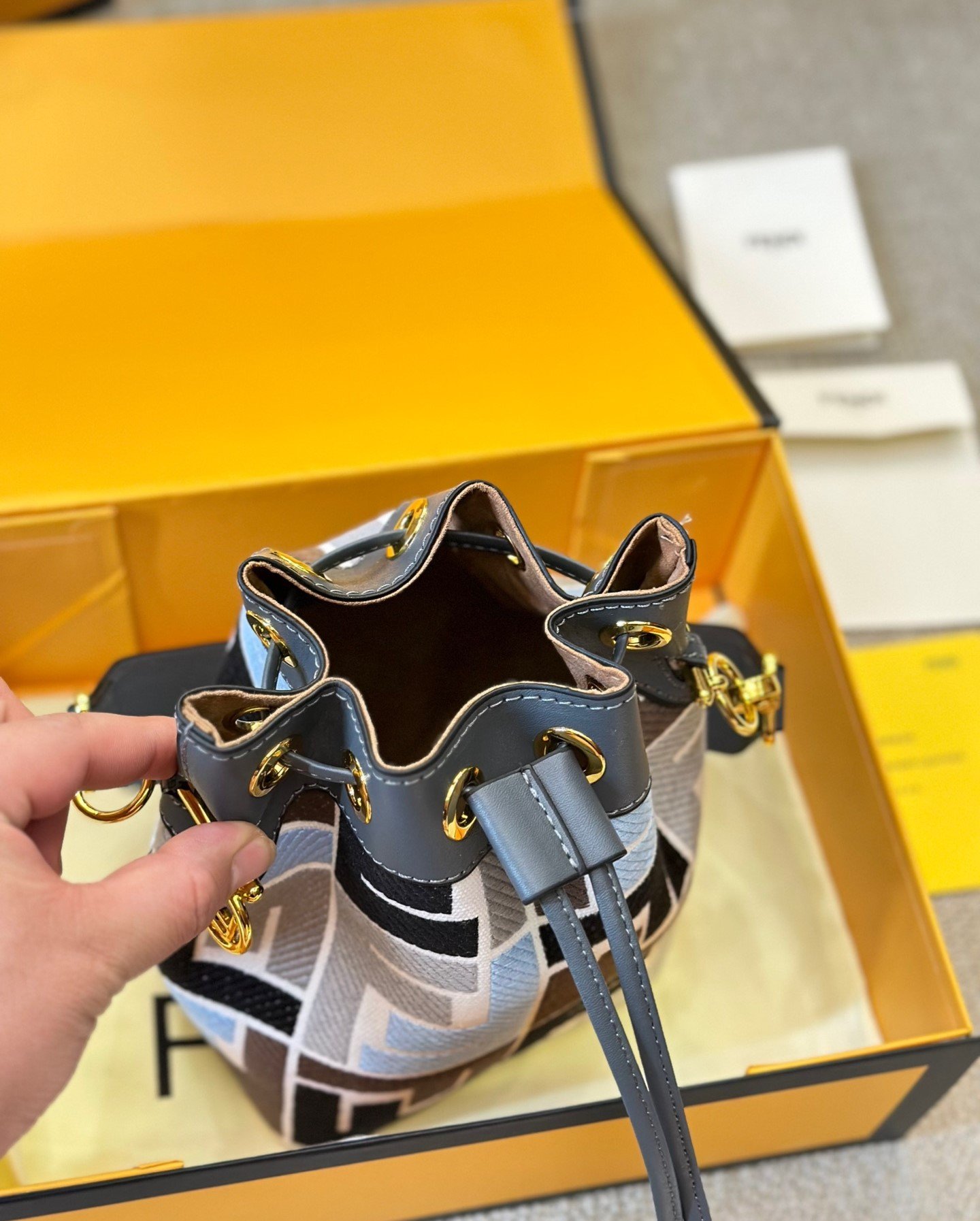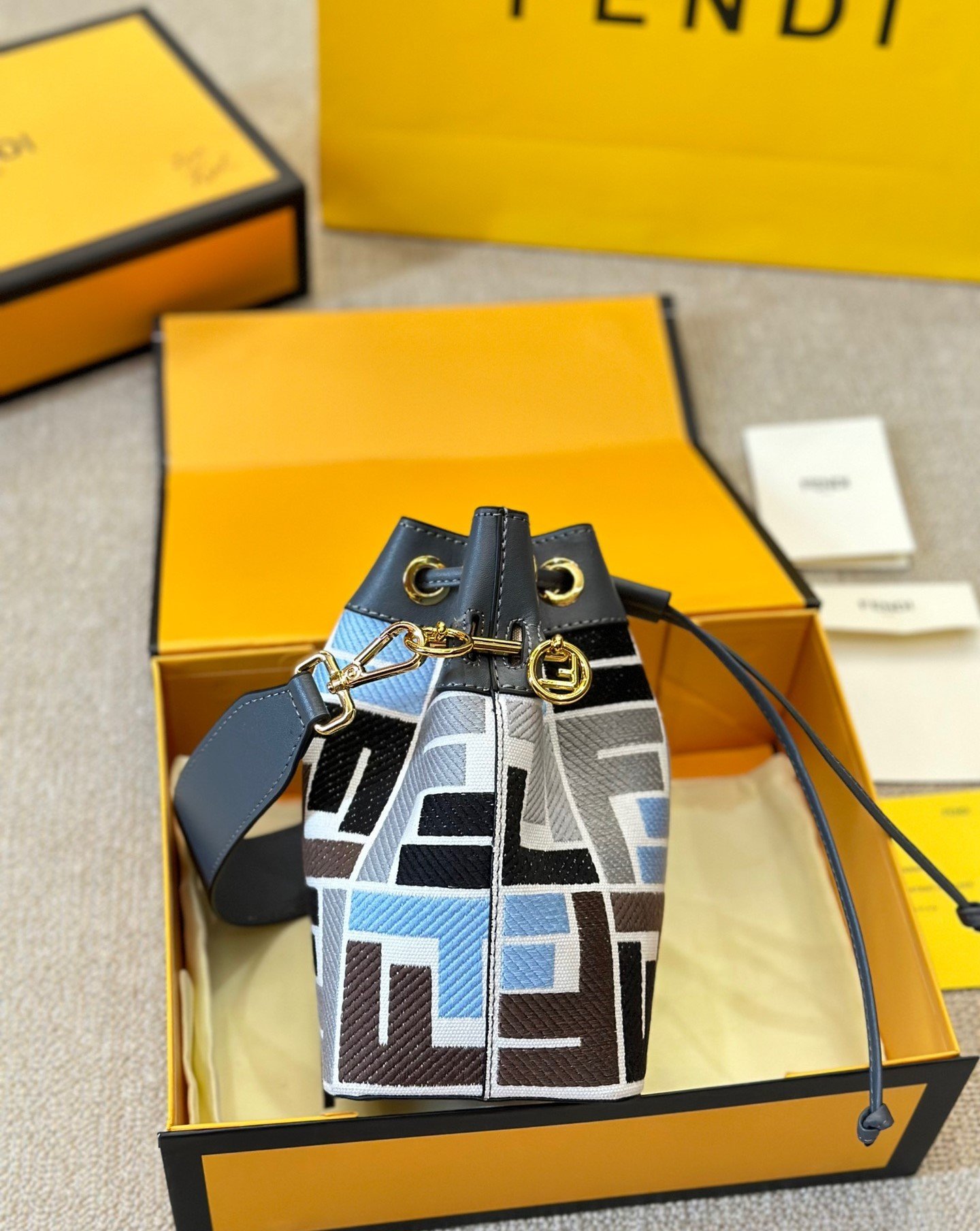 Natural-Colored Canvas With An Embossed FF Embroidery Motif In Multicolor Light Blue Blue And Brown Thread And Embellished With Blue Leather. Lined And With Gold-Finish Metalware.