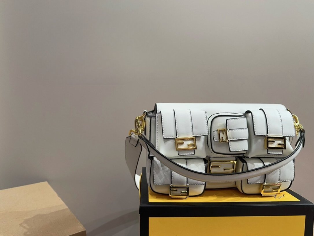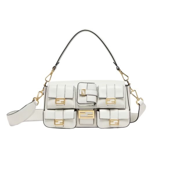 Fendi Multipocket Baguette Brown Ff Jacquard Fabric Bag White 26Cm 8Br808Abvef0K7E