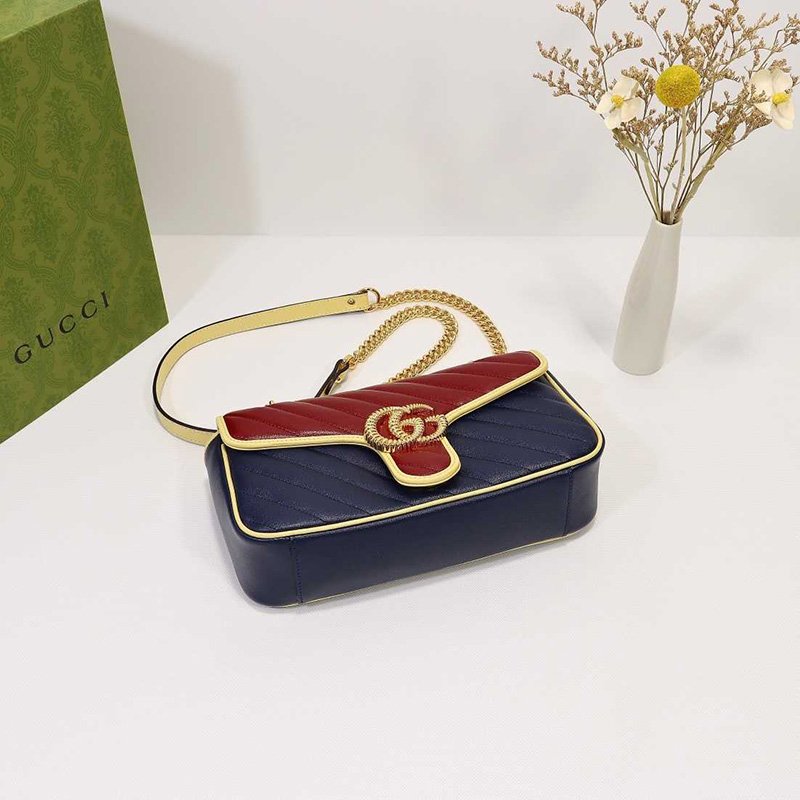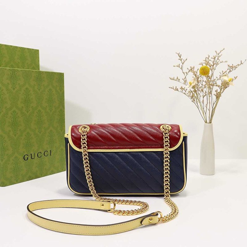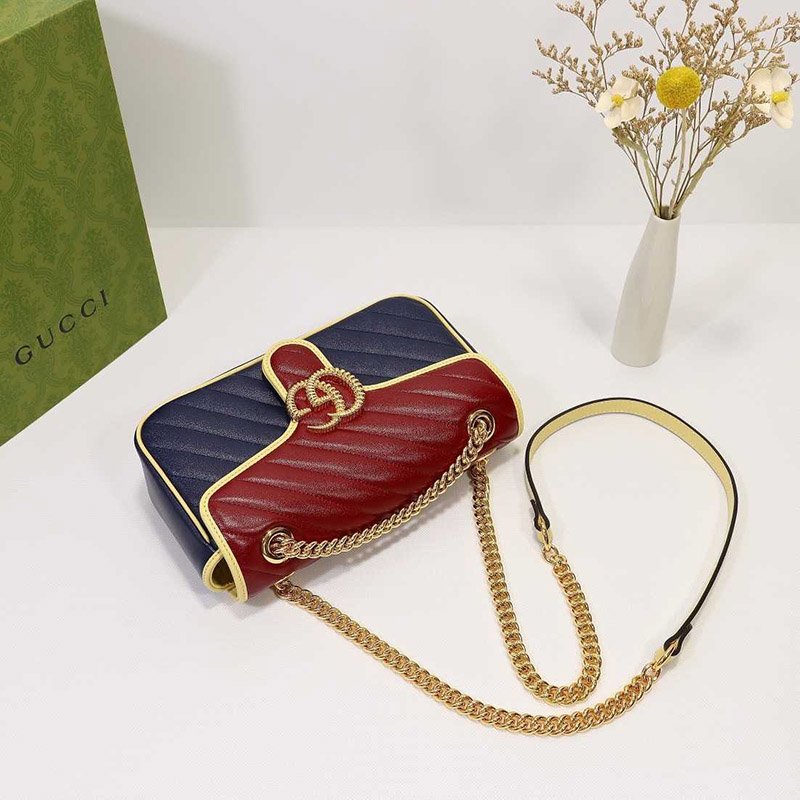 Top Quality Replica Bag Product Details Style 443497 1X5CG 4179 Blue and red diagonal matelass? leather Butter leather trim Gold-toned hardware Double G Interior zipper pocket Sliding chain strap can be worn as a shoulder strap with 22? drop, as a top handle with 12? drop or as a cross body bag. Flap with spring […]