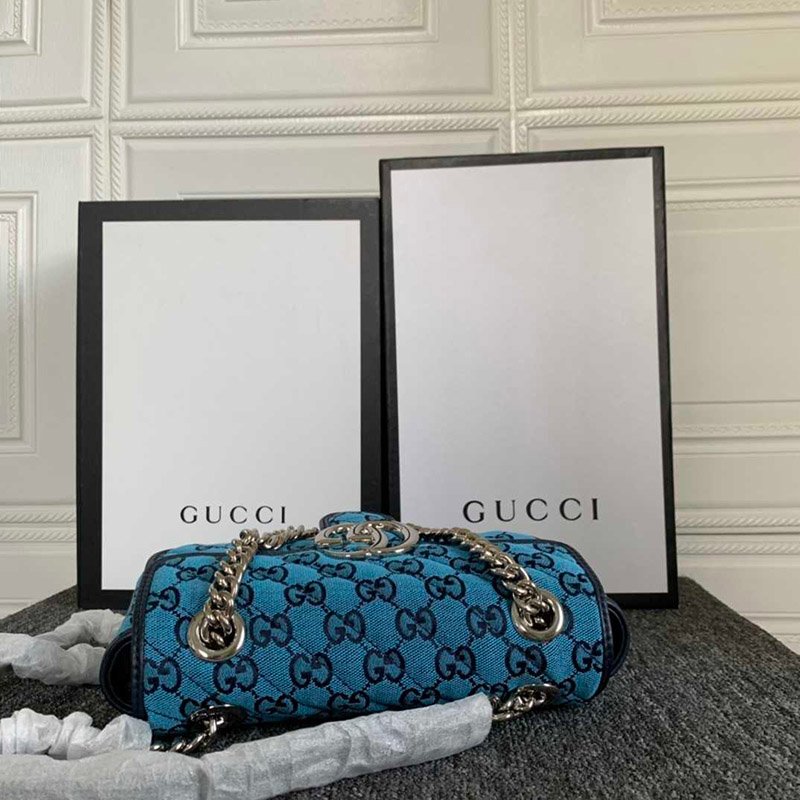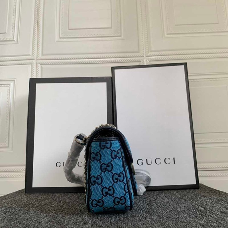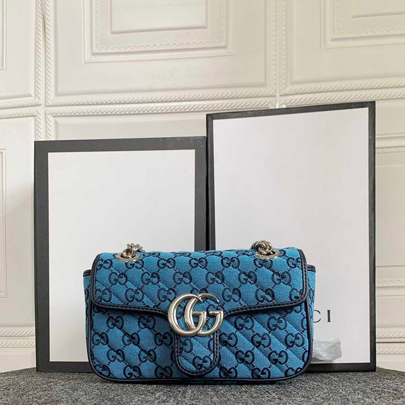 Top Quality Replica Bag Product Details Style 443497 2UZCN 4164 Light blue and blue diagonal matelass? GG canvas Blue leather trim Silver-toned hardware Double G Interior zipper pocket Sliding chain strap can be worn as a shoulder strap with 22? drop, as a top handle with 12? drop or as a cross body bag. Flap […]
