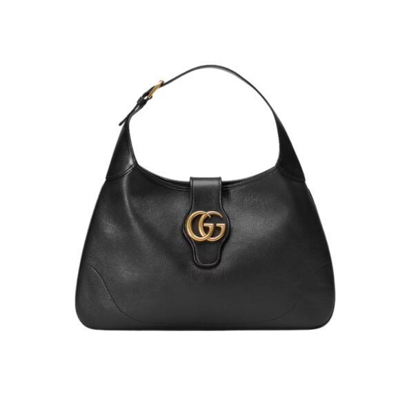 - Shiny gold-toned hardware