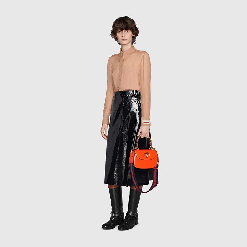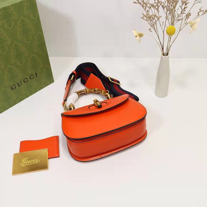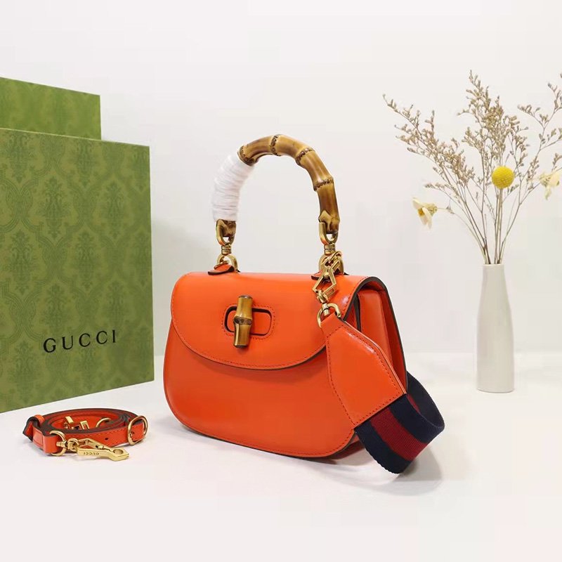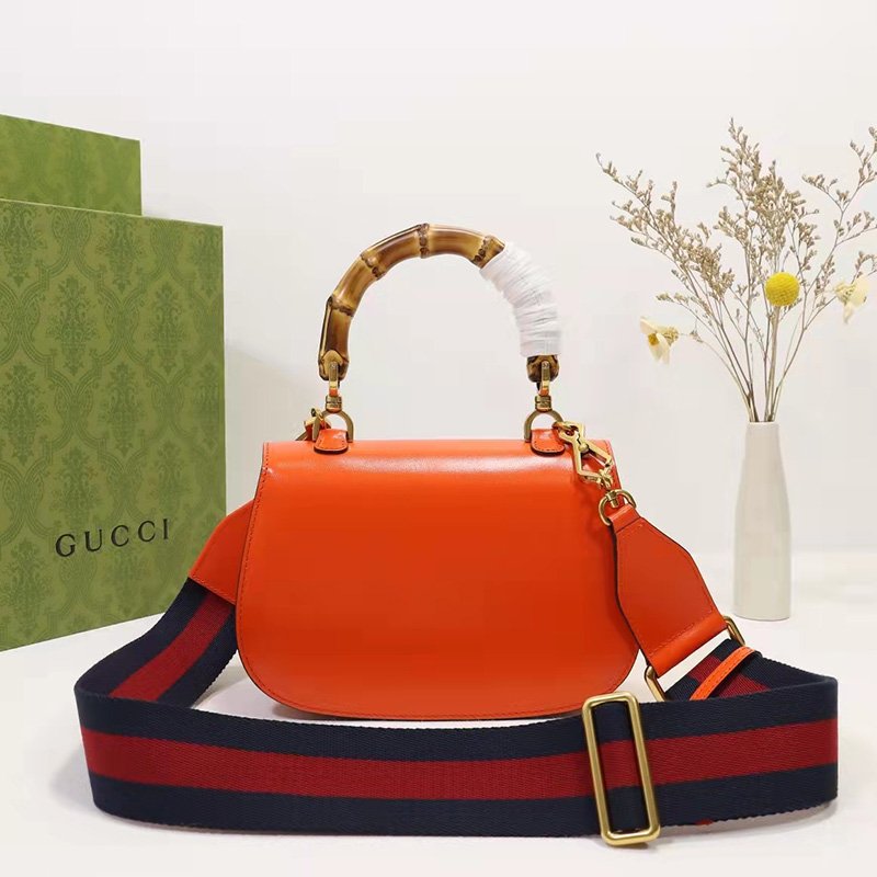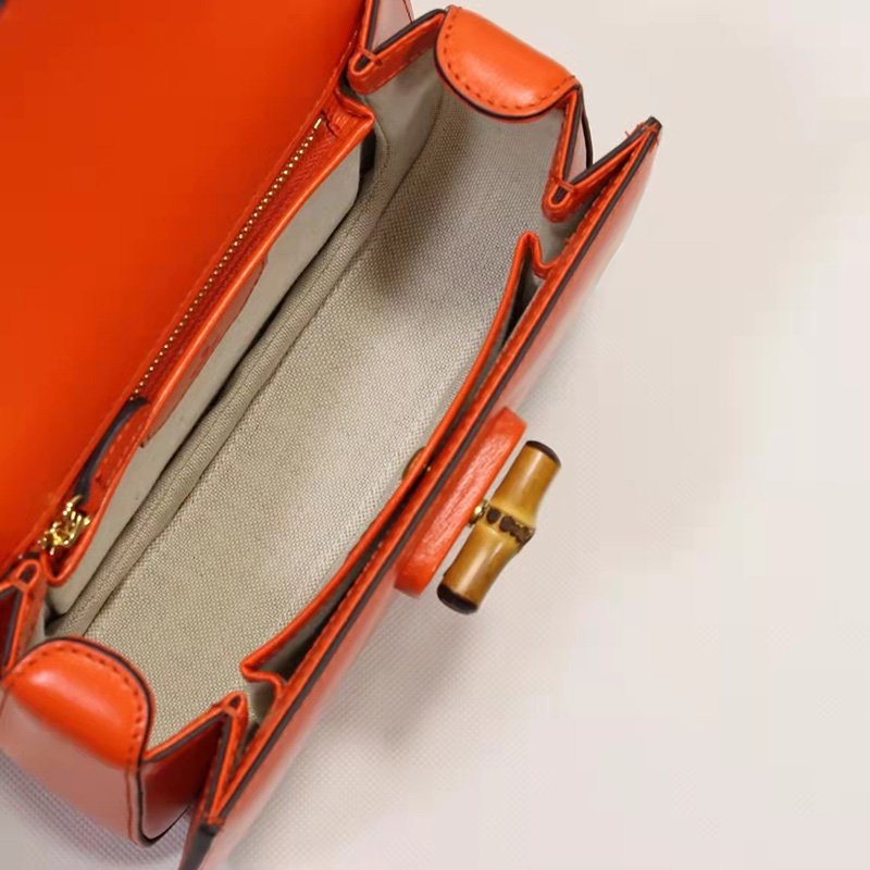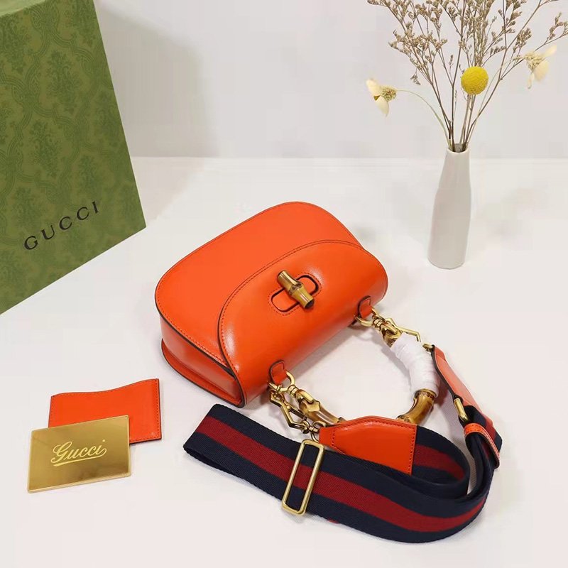 Top Quality Replica Bag PRODUCT DETAILS Style 675797 10ODT 7768 Orange leather Antique gold-toned and bamboo hardware Lining: cotton linen Inside: 1 zip pocket; 1 open pocket with mirror Bamboo handles with 4.3″ drop Web strap with 18.5″ drop and leather with 19.7″ drop Weight: .9kg Small size: 8.3″W x 6″H x 2.75″D Small size: […]