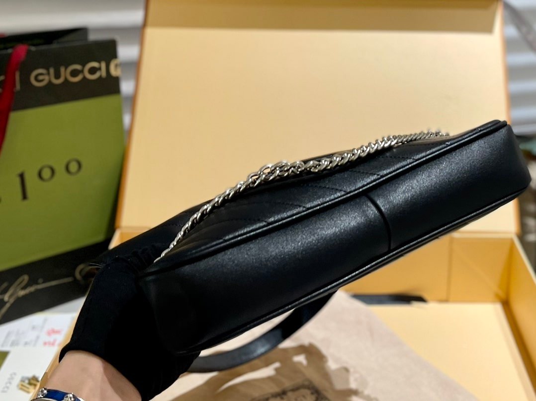 1:1 Replica Bags Measurement: 30 x 24 cm / 11.8 x 9.4 inches Black leather Cotton linen lining Round Interlocking G leather patch Inside: main compartments and zip pocket