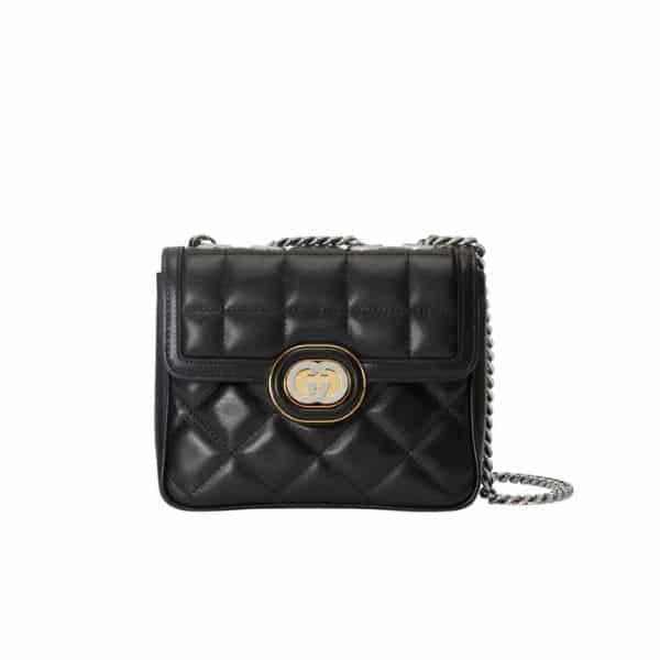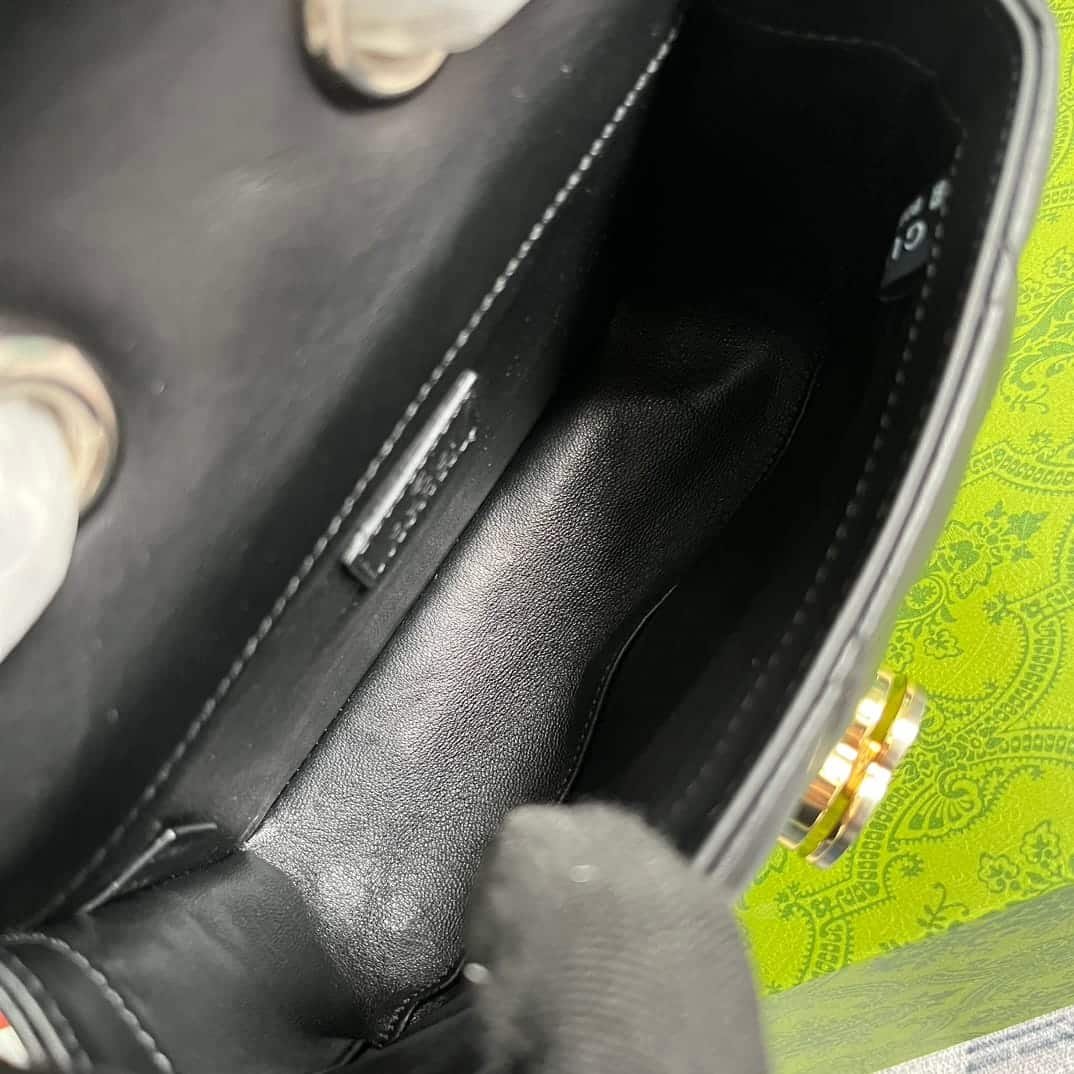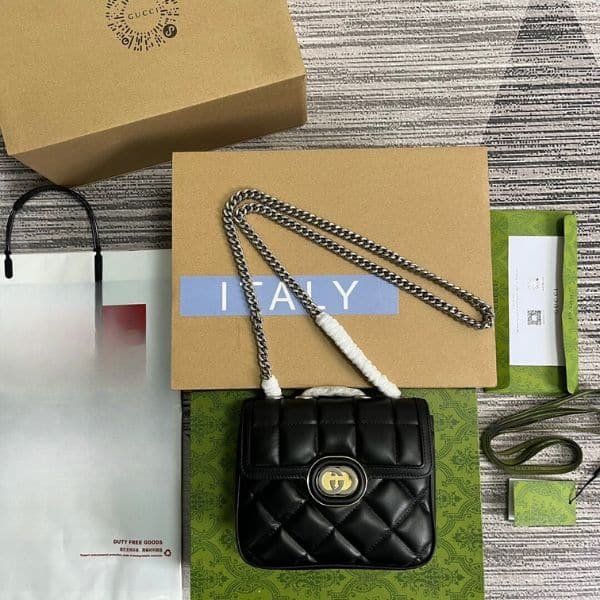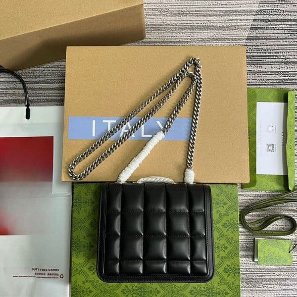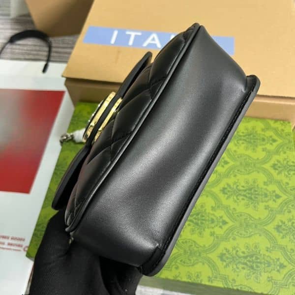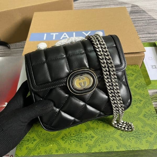 1:1 Replica Bags Measurements: 18 x 14.5 x 8 cm / 7 x 5.7 x 3.1 inches Black quilted leather Two-toned vintage Interlocking G hardware Leather lining Interlocking G detail