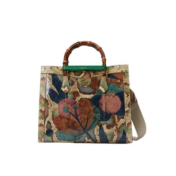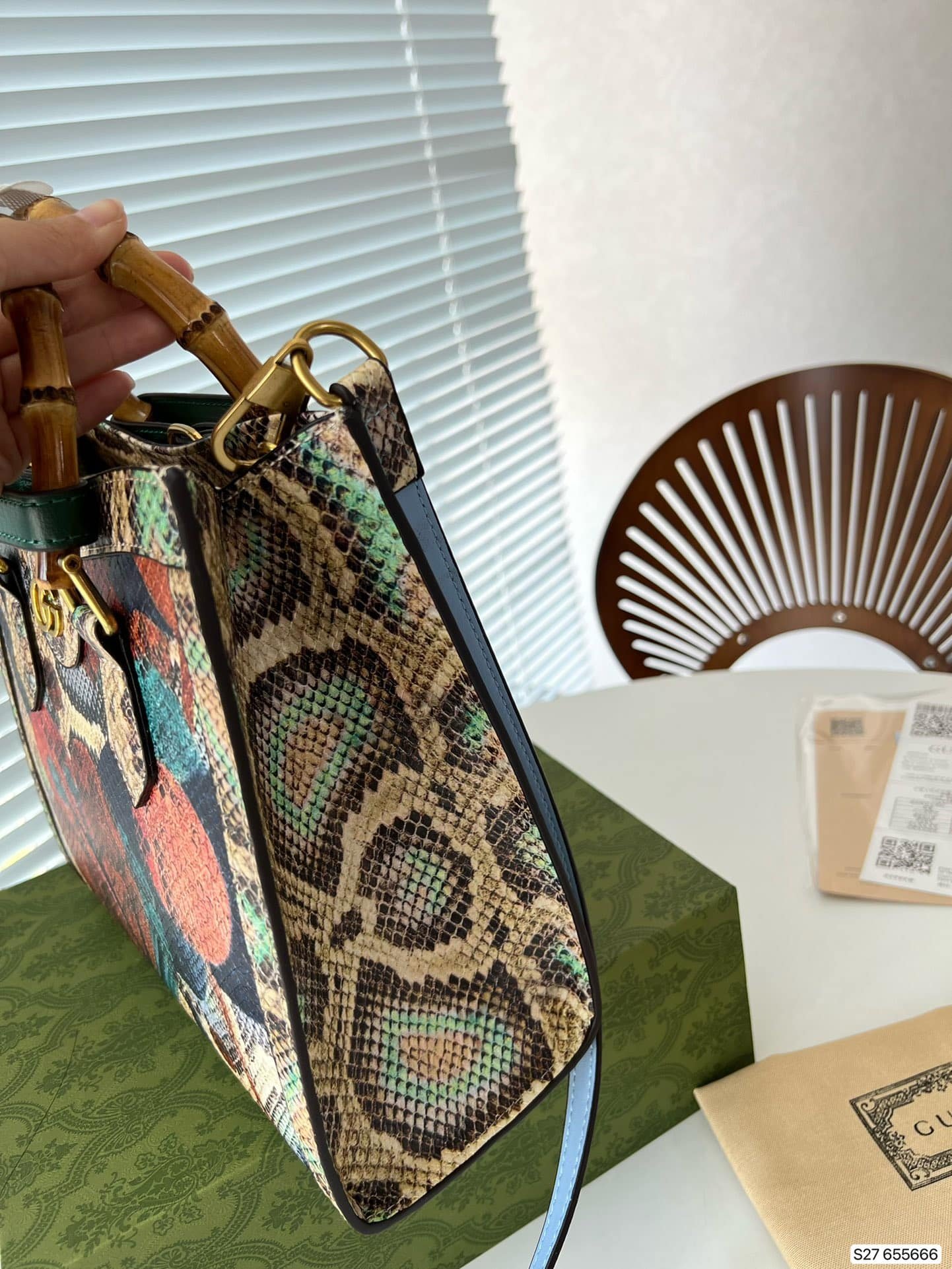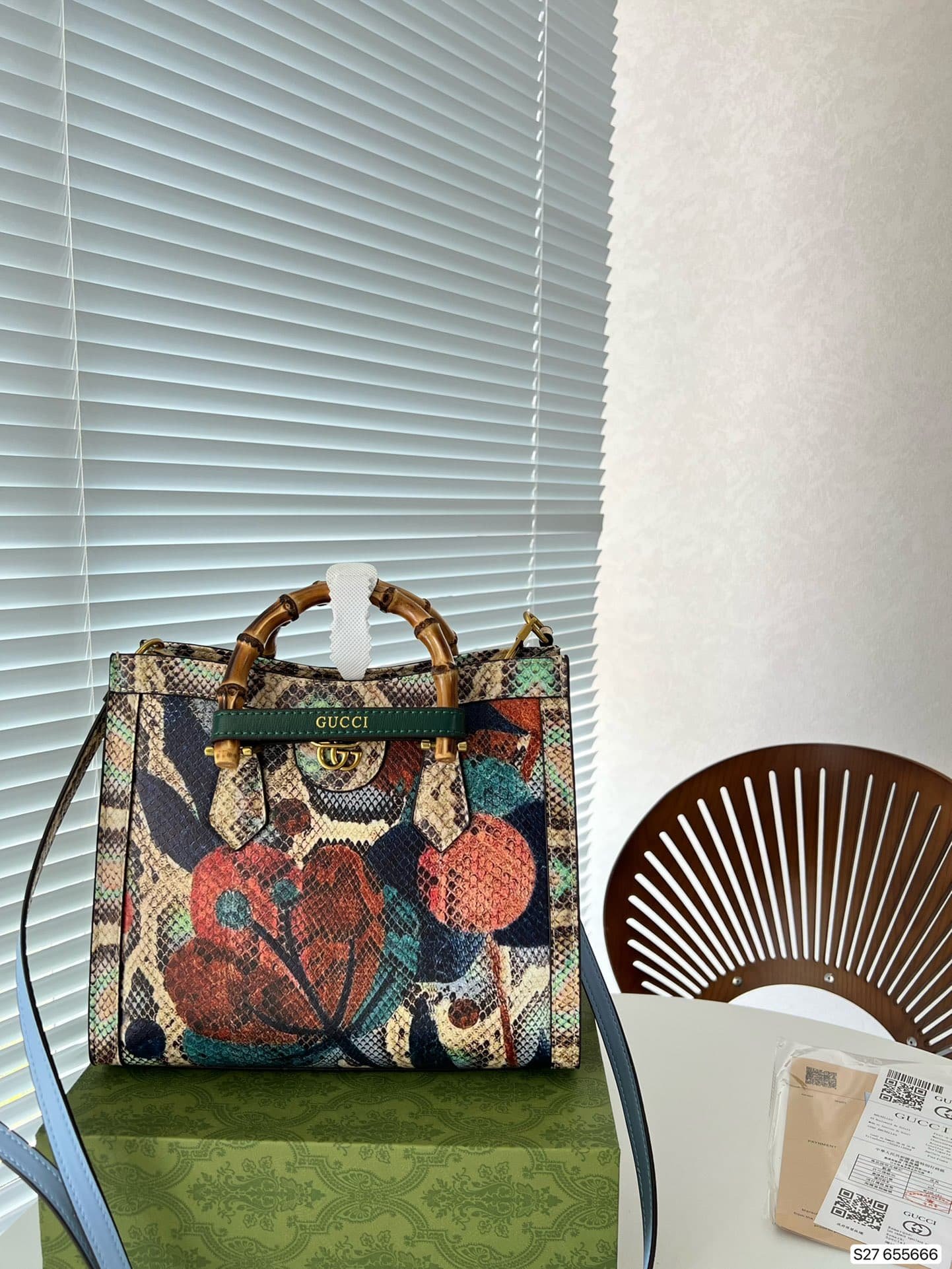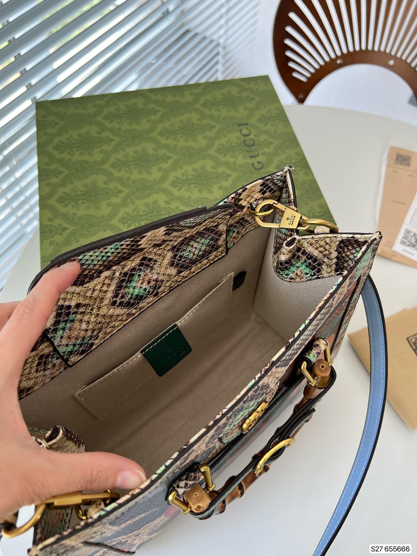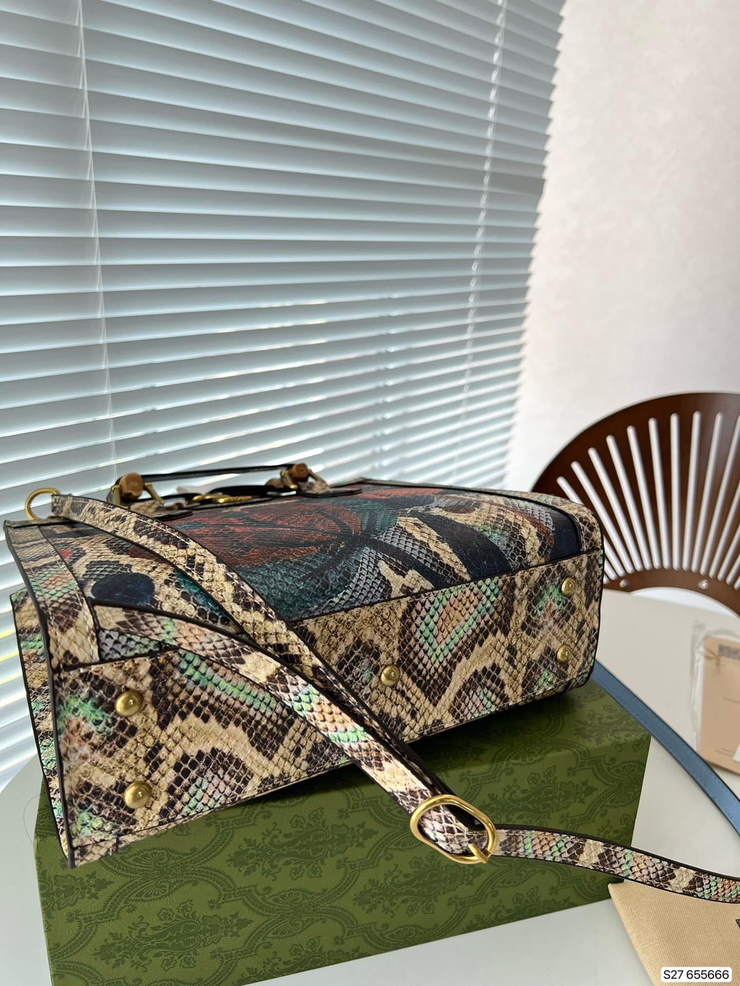 1:1 Replica Bags Measurements: 27 x 24 cm / 10.6 x 9.4 inches Natural python Maxi flower print Shiny antique gold-toned hardware Double G Interior open pocket and two zip compartments
