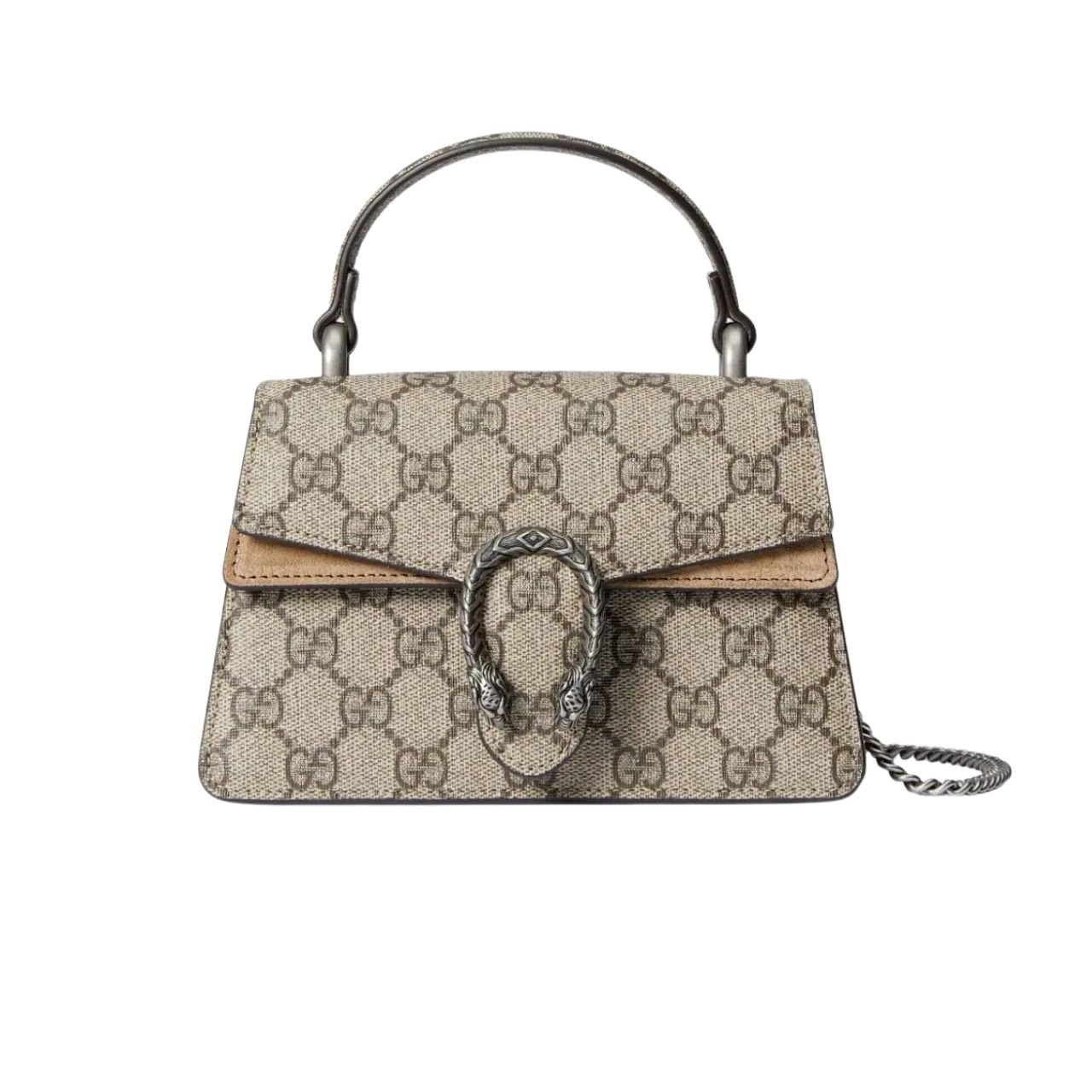 1:1 Replica Bags Measurements: 18 x 12 cm / 7 x 4.7 inches Beige Suede Detail GG Supreme Canvas Palladium Tone Hardware Tiger Head Motif Concealed Front Closure Detachable/Adjustable Shoulder Strap