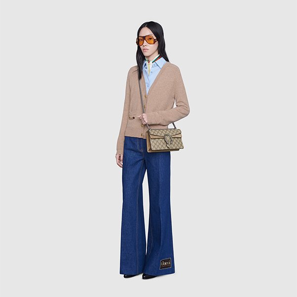 Sliding chain strap can be worn as a shoulder strap with 23″ drop or can be worn as a top handle with 12.5″ drop