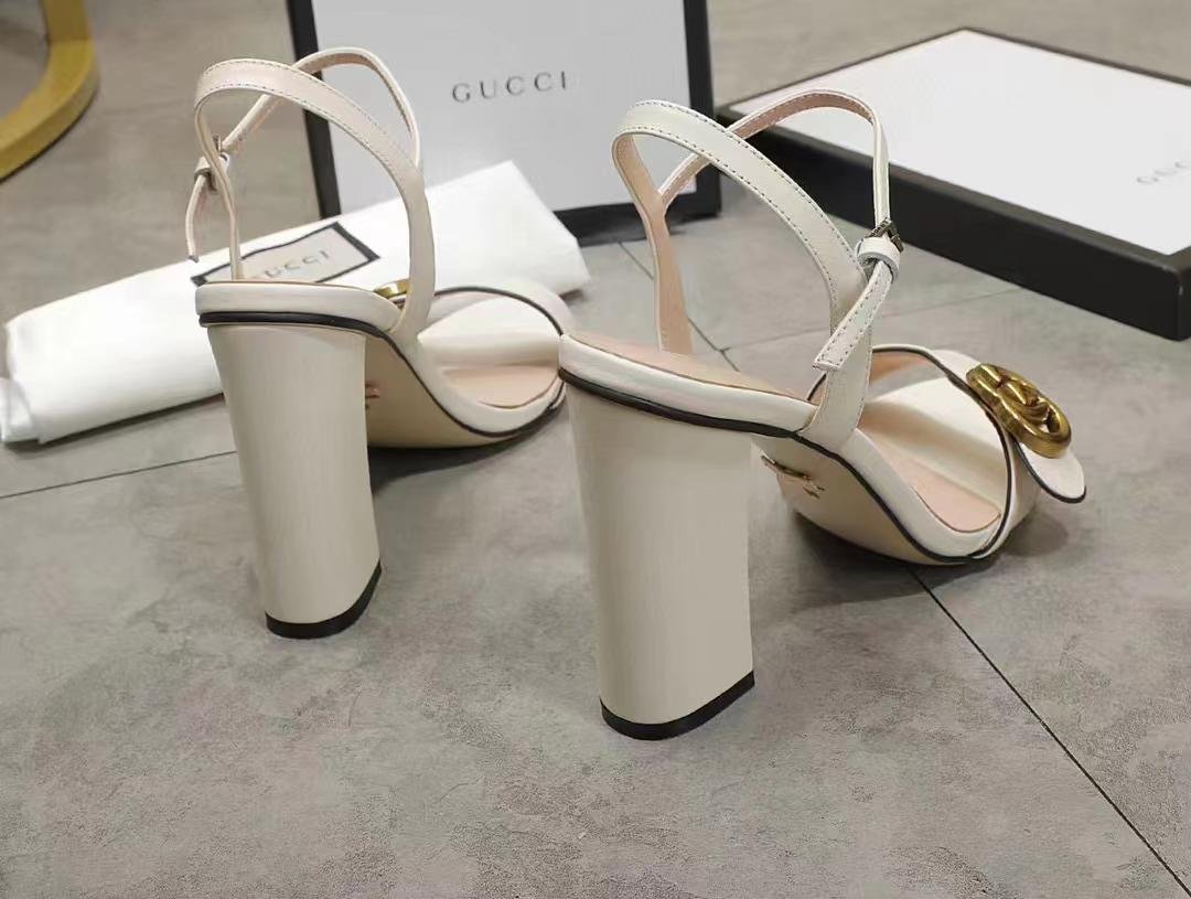 1:1 REPLICA SHOES White leather Adjustable ankle strap Double G High heel 105mm heel