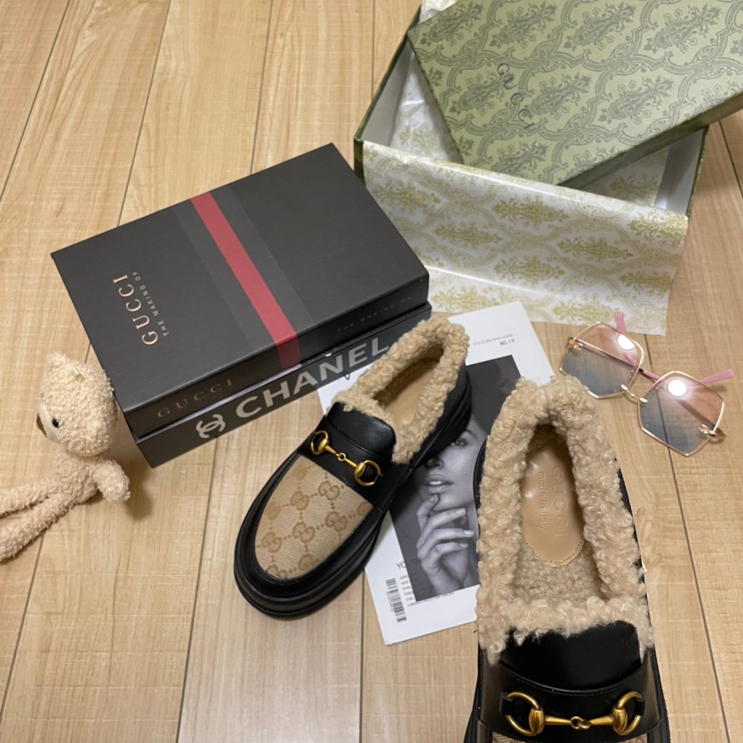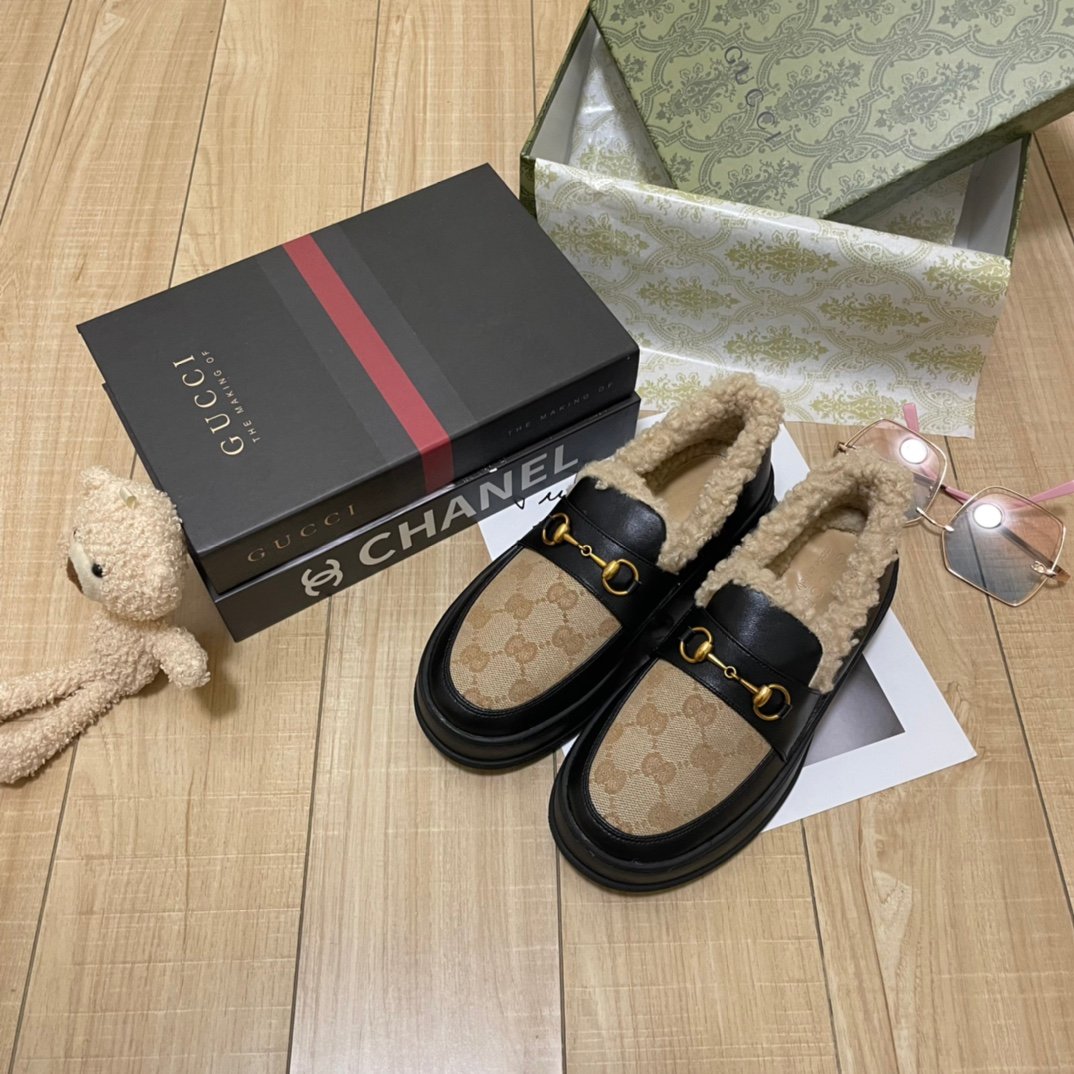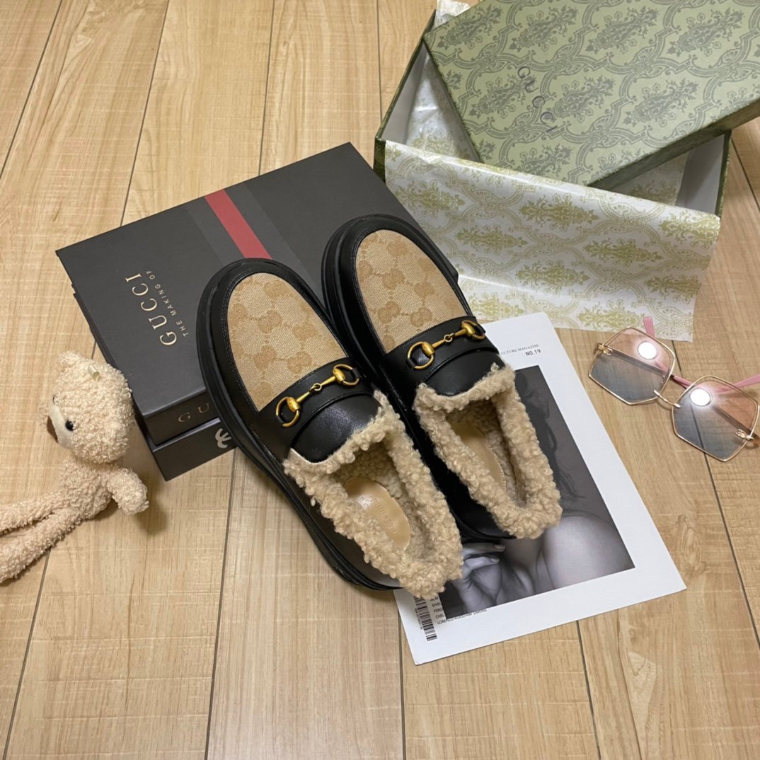 Be the first to review “Gucci Fleece Collar Loafers Gg Beige And Black Leather”
