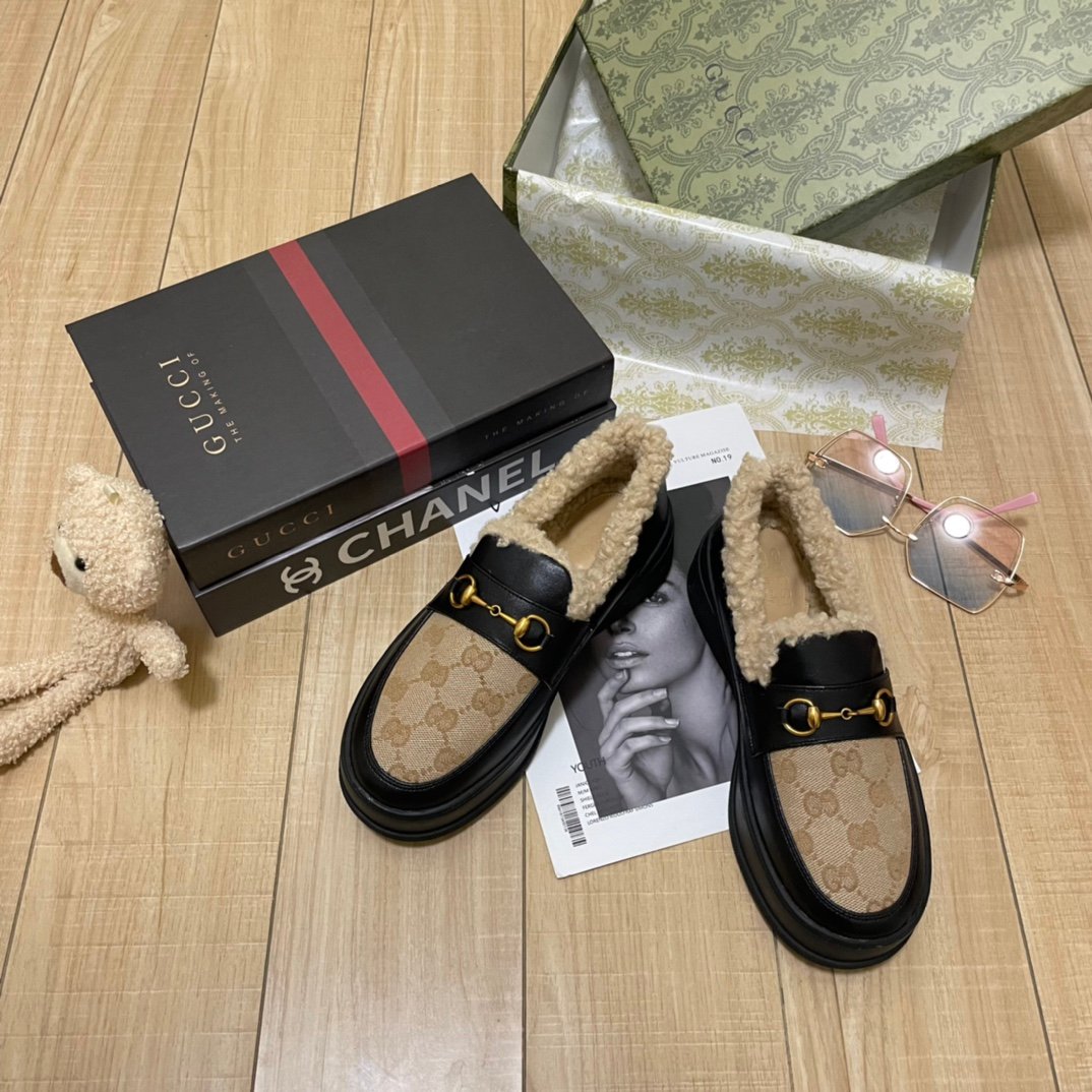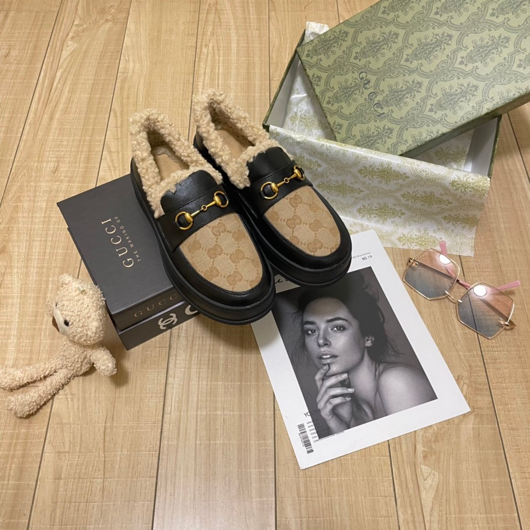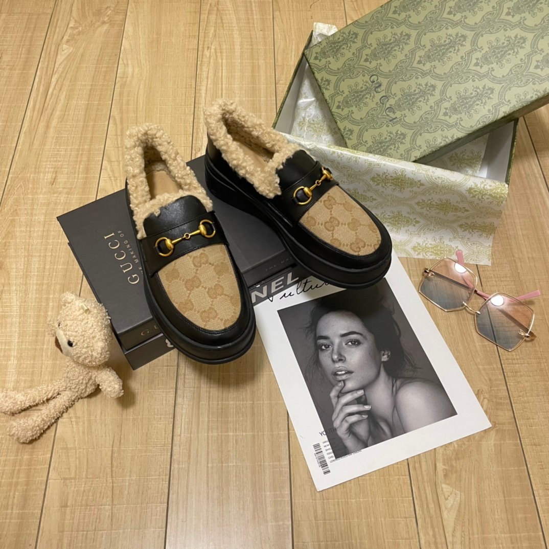 Be the first to review “Gucci Fleece Collar Loafers Gg Beige And Black Leather”