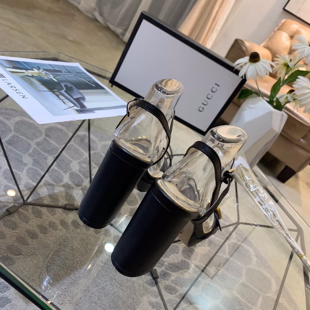 1:1 Replica Shoes Black leather Adjustable ankle strap Double G