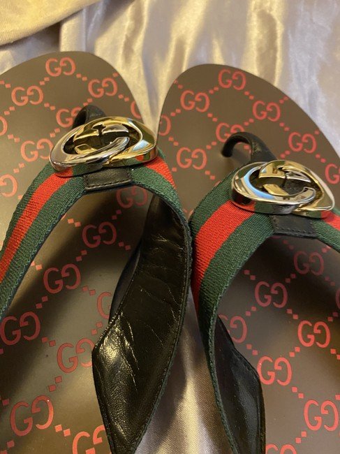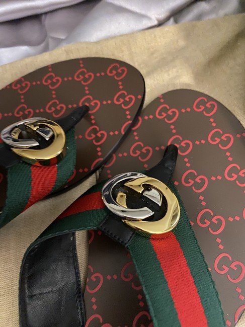 1:1 REPLICA SHOES Green and red nylon Web with black leather trim Gold- and silver-toned hardware Interlocking G Leather sole with GG pattern Square toe Flat 5mm heel height