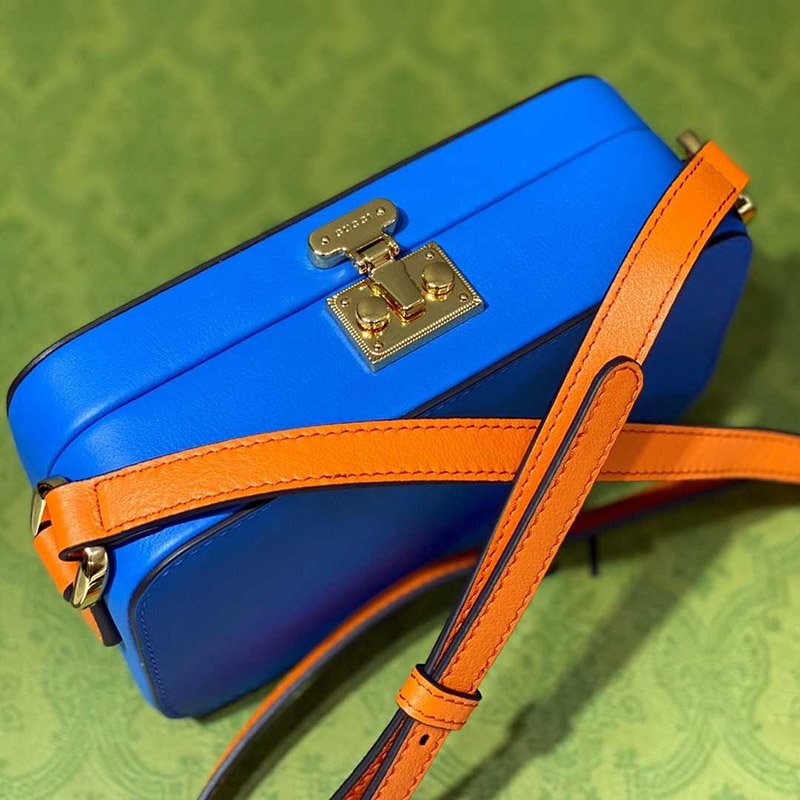 Pop colors add a contemporary touch to the Interlocking G. An archival code inspired by the initials of the Founder of the House, the symbol evolves each season, celebrating different chapter’s of Gucci’s history. The mini bag is completed by an adjustable shoulder strap.
