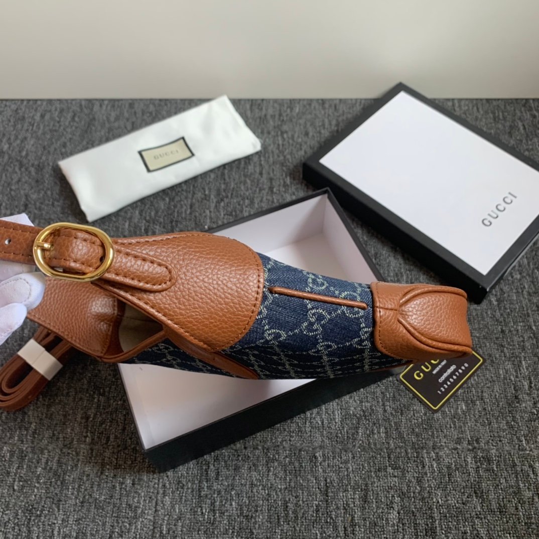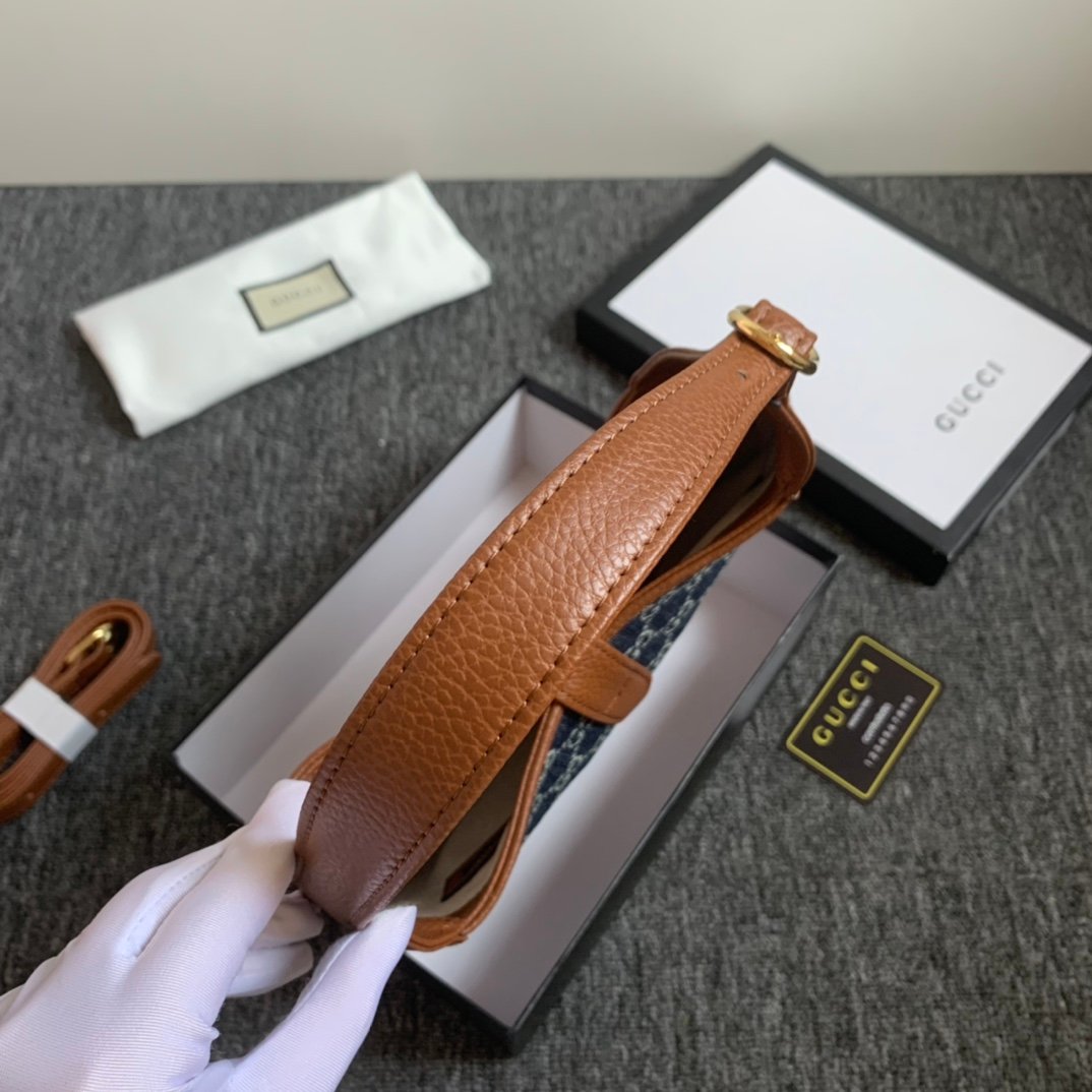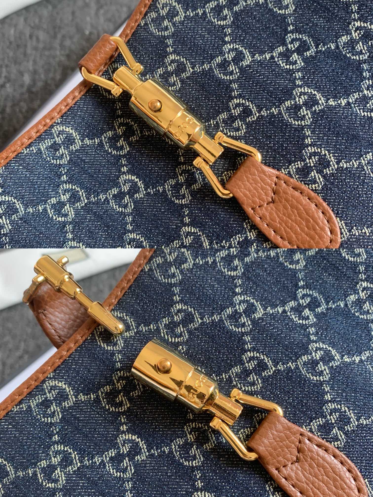 - Dark blue and ivory eco washed organic GG jacquard denim
