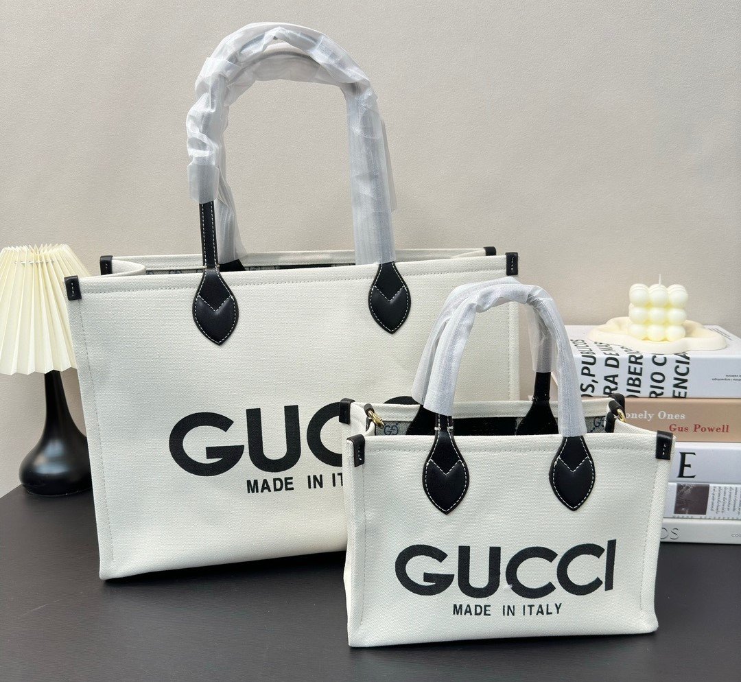 1:1 Replica Bags Measurement: 45 x 31 cm / 17.7 x 12.2 inches Beige cotton linen canvas Dark Blue leather trim Gucci ‘Made in Italy’ print Beige and ebony GG Supreme lining Internal leather pouch
