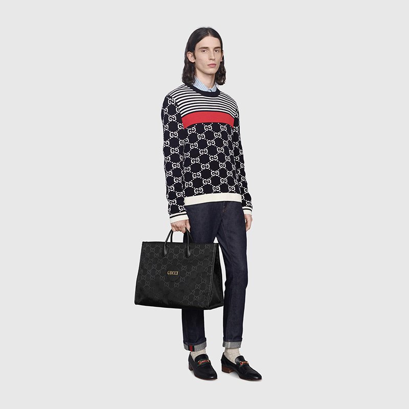 This item will come with a FSC-certified recycled gift box, shipped flat, and recycled nylon flannel dust bag. Each Gucci Off The Grid product will ship with a dedicated booklet detailing the collection, printed on FSC-certified recycled paper.
