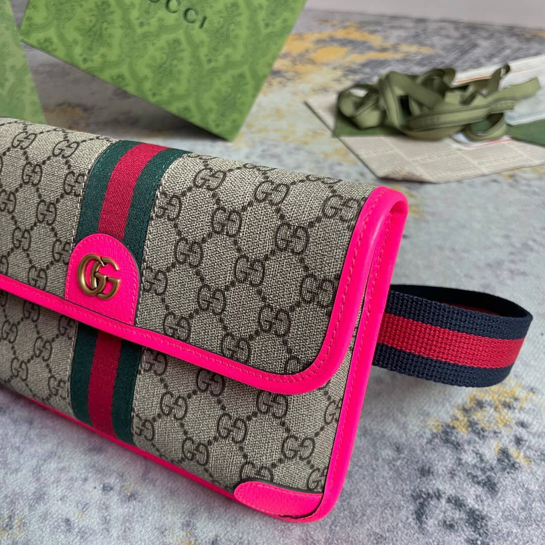 1:1 REPLICA BAGS Measurement: 24cm x 17cm x 3.5cm/ 9.5 x 6.7 x 1.4 inches Beige and ebony GG Fuchsia leather trim Green and red Web