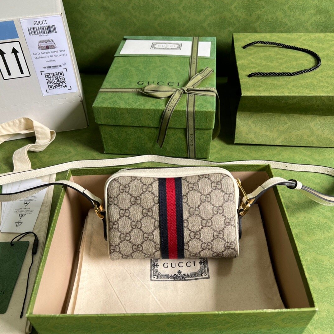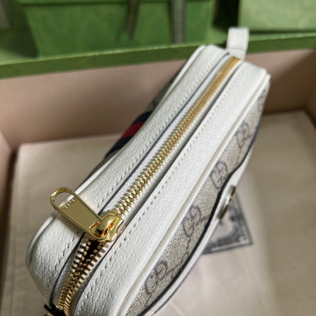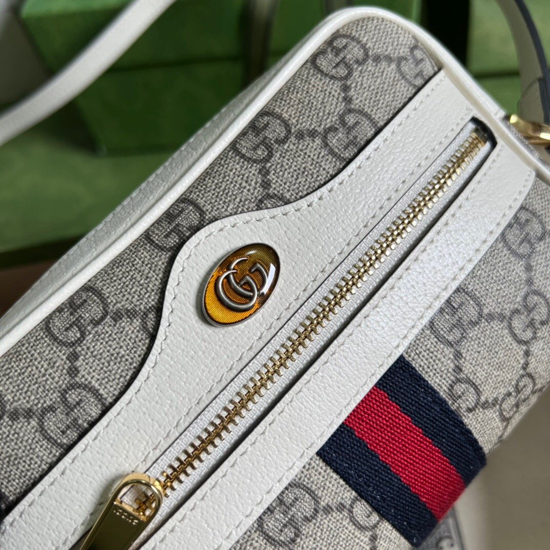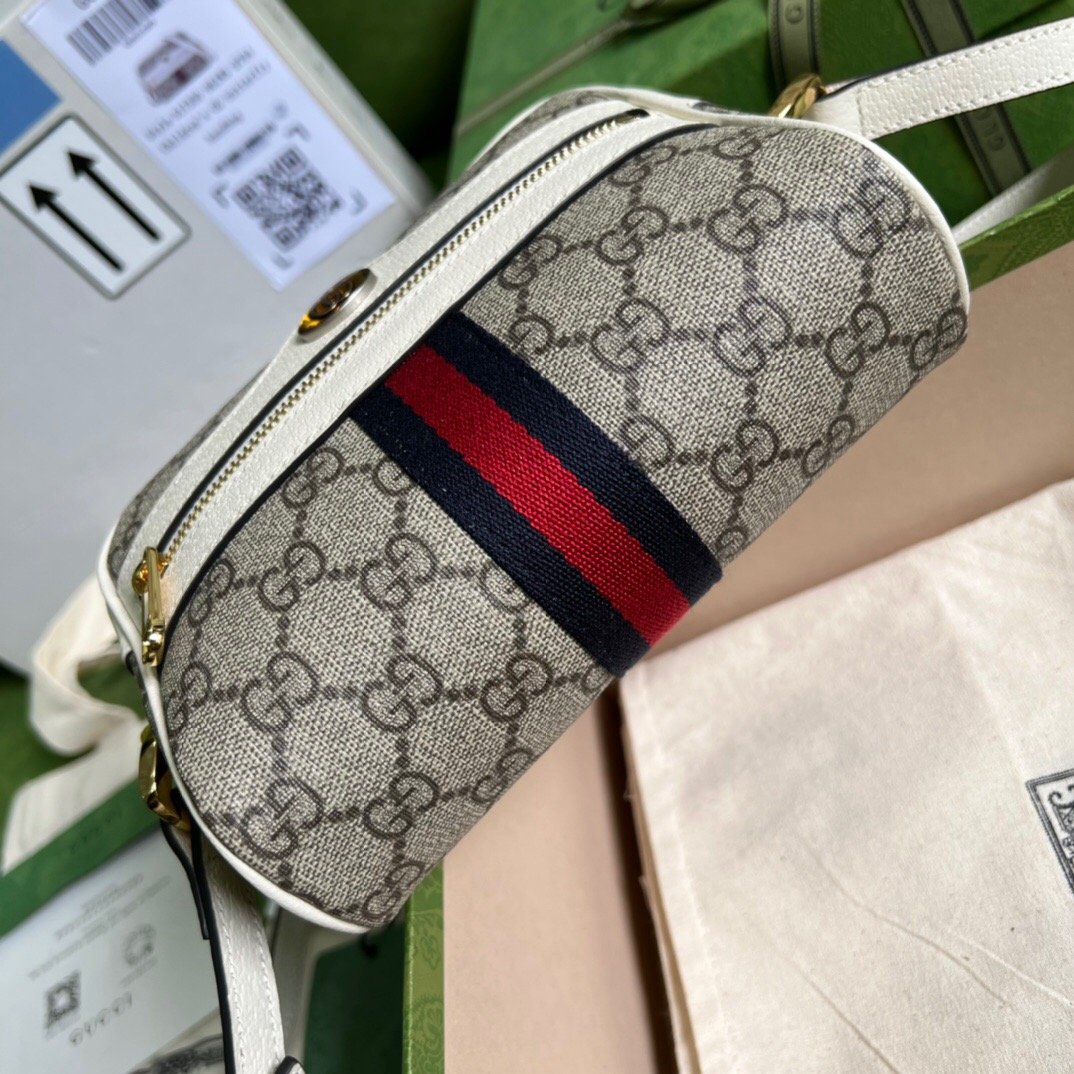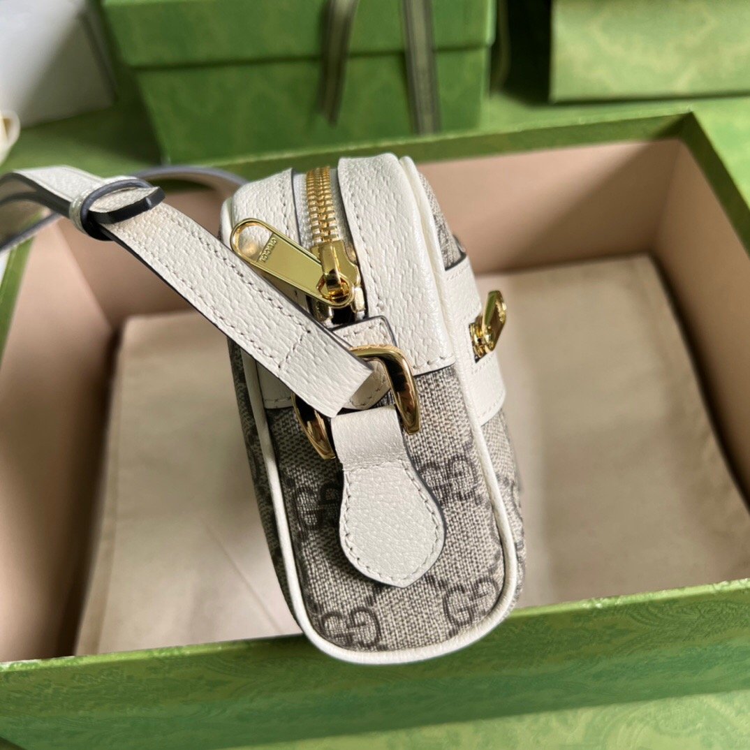 - Beige and ebony GG Supreme canvas, with white leather trim