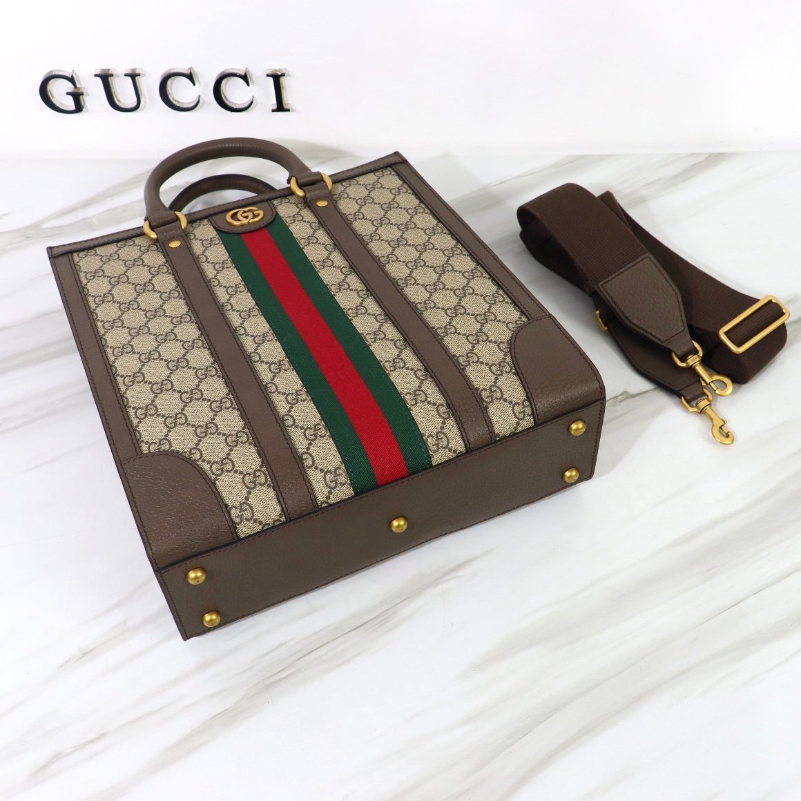 - Gold-toned hardware