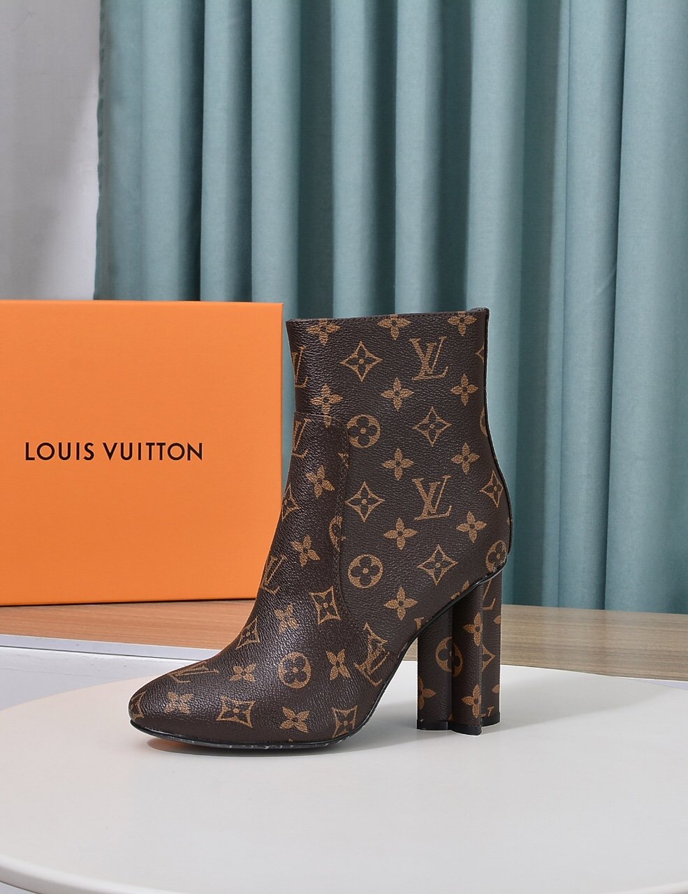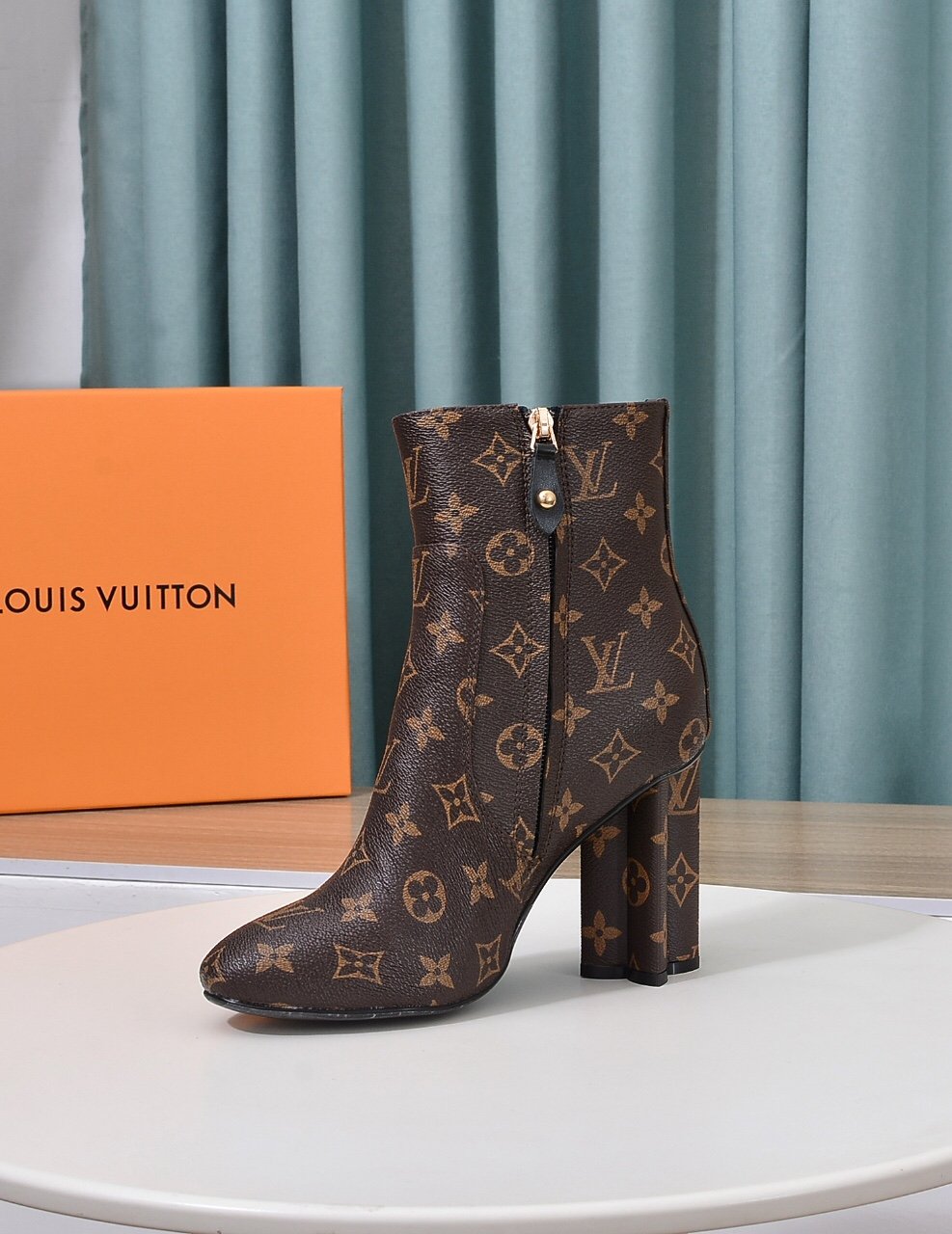 1:1 Replica Shoes Monogram leather Side zip Leather outsole Monogram Flower-shaped heel