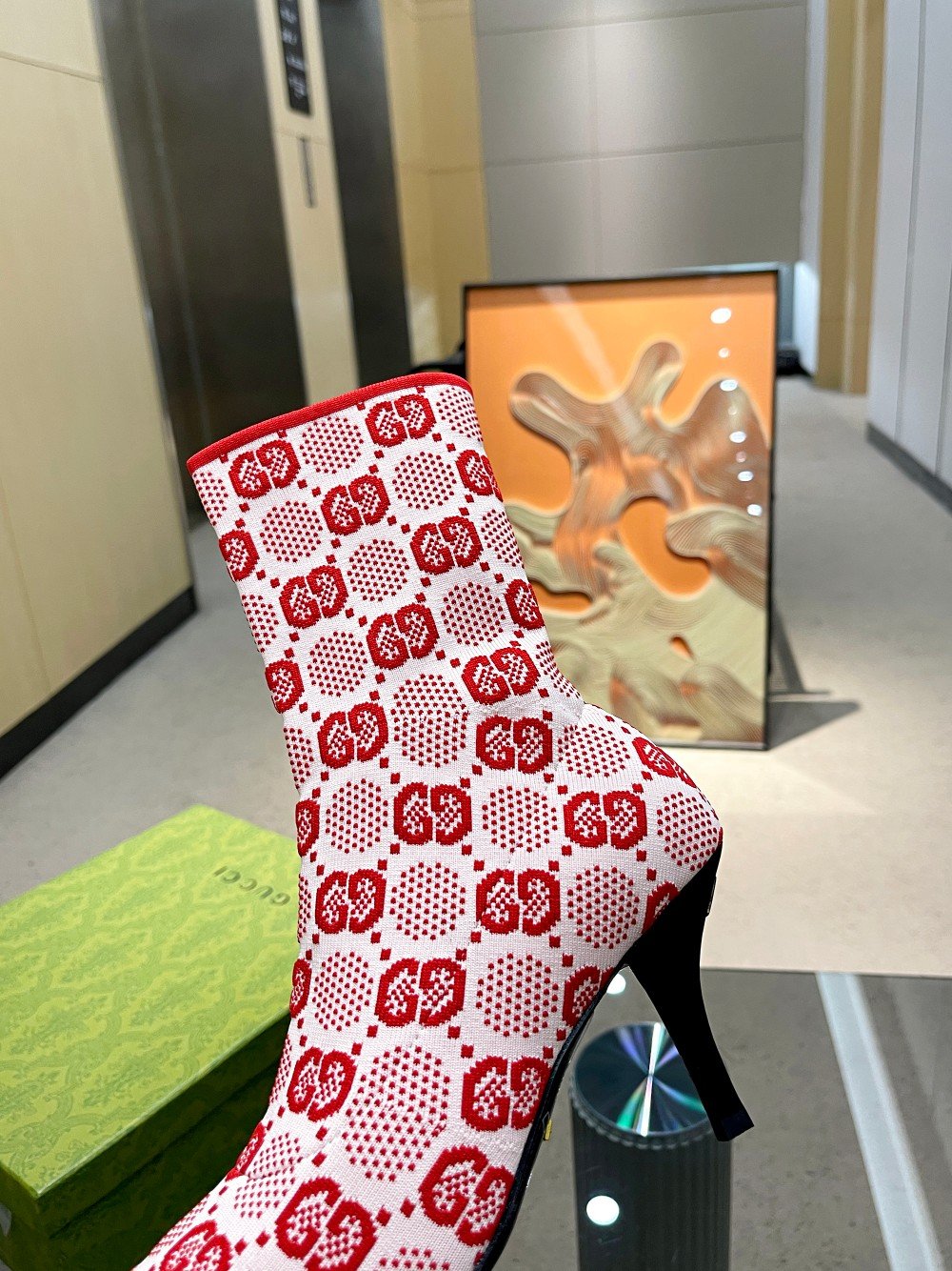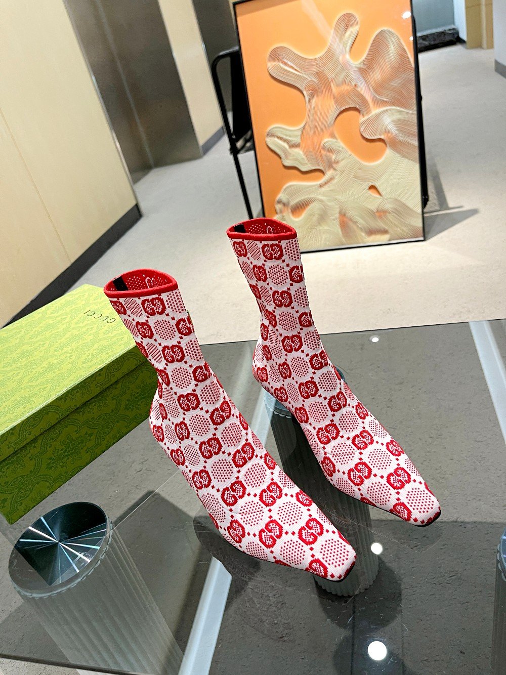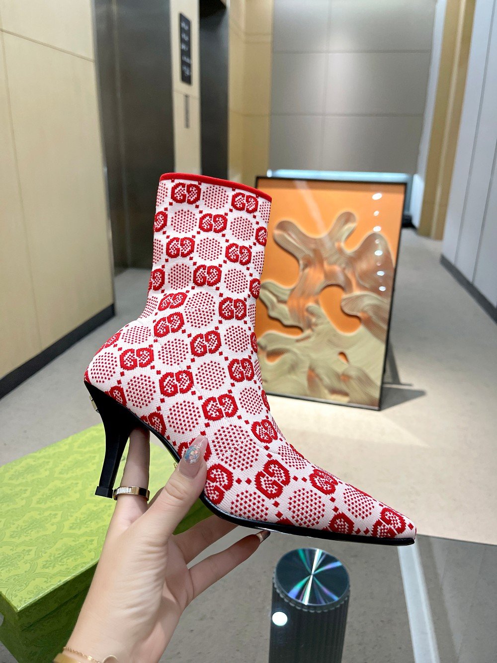 1:1 Replica Shoes White and red GG technical knit fabric Square toe Square G metal detail Leather sole Mid-heel