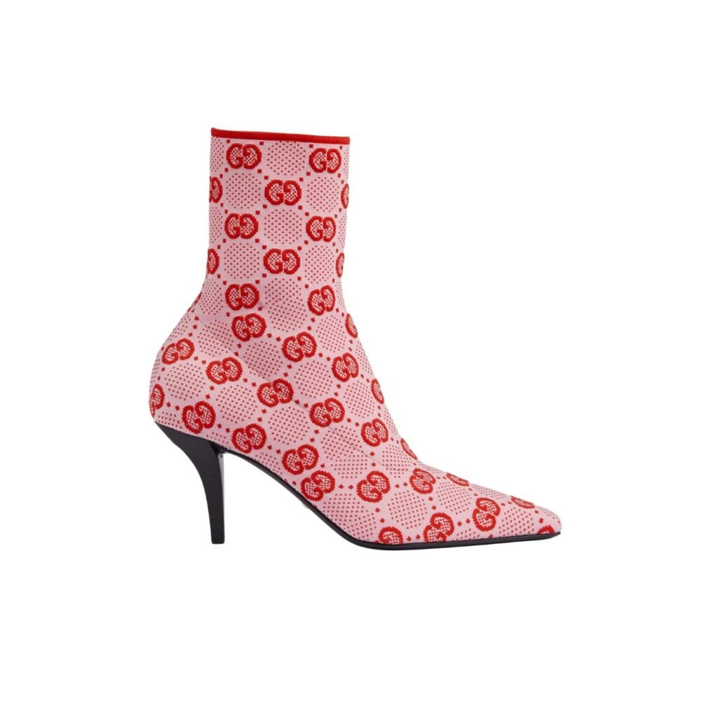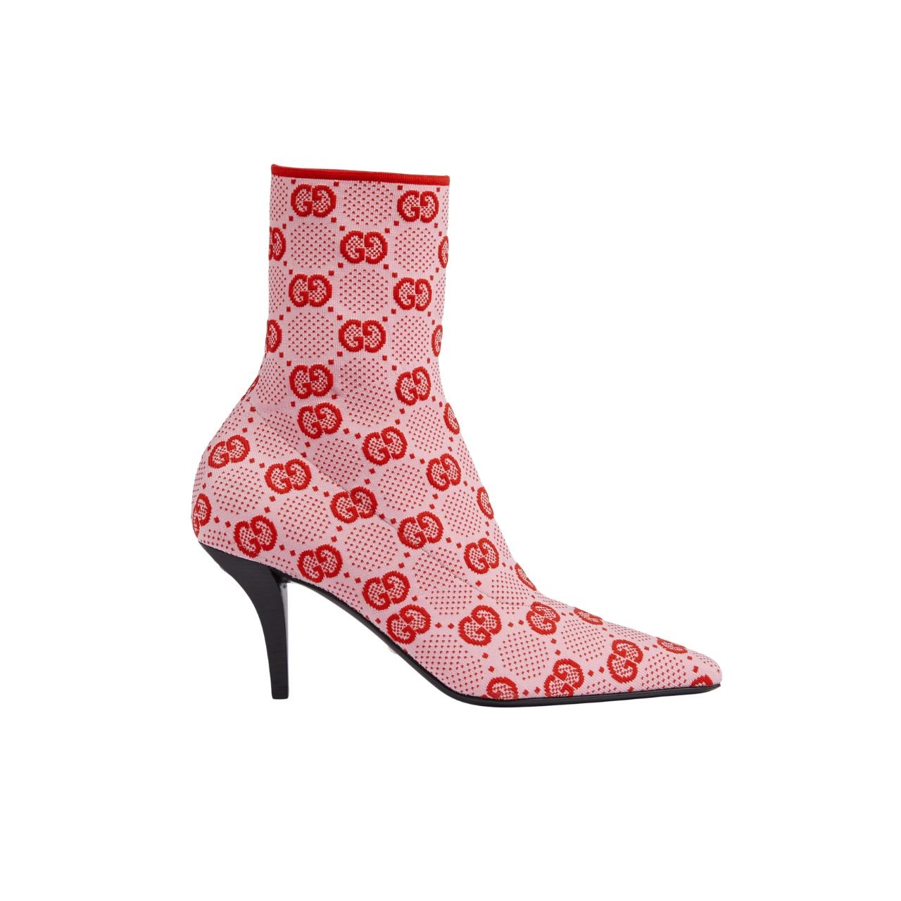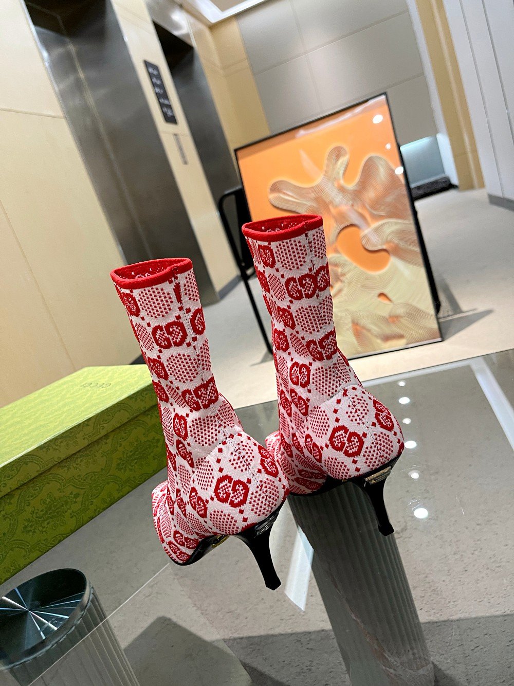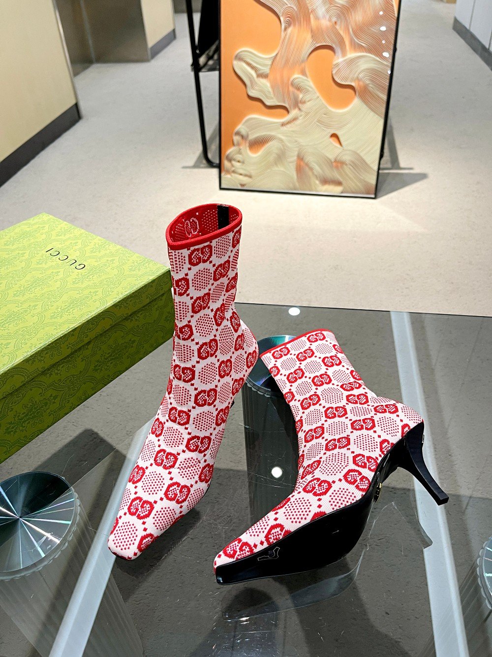 1:1 Replica Shoes White and red GG technical knit fabric Square toe Square G metal detail Leather sole Mid-heel