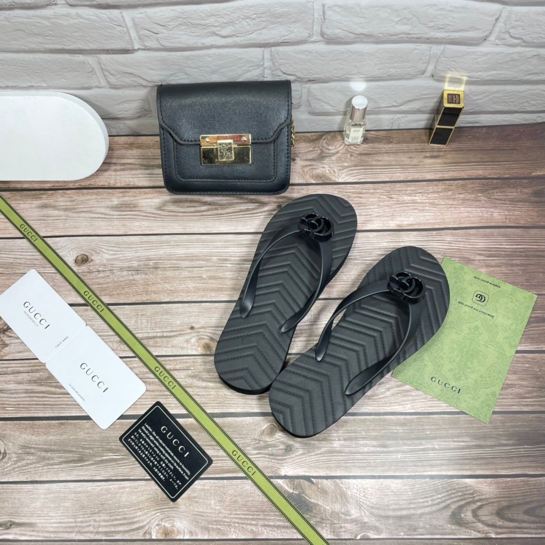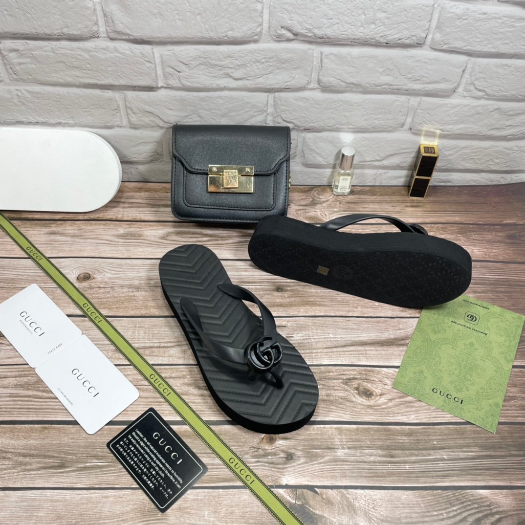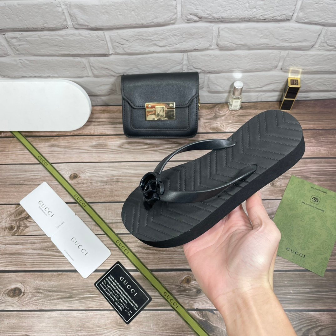1:1 REPLICA SHOES Black chevron pattern rubber insole Women’s Resin Double G Flatform rubber sole