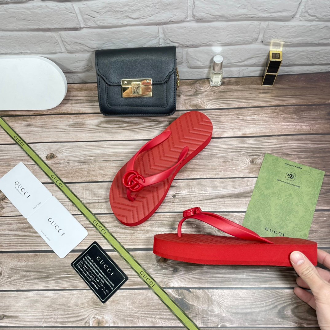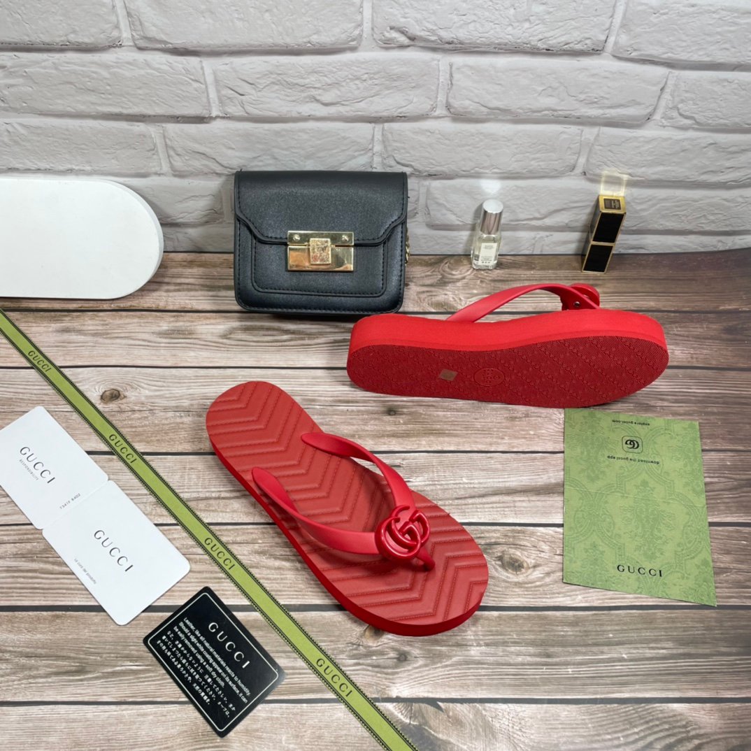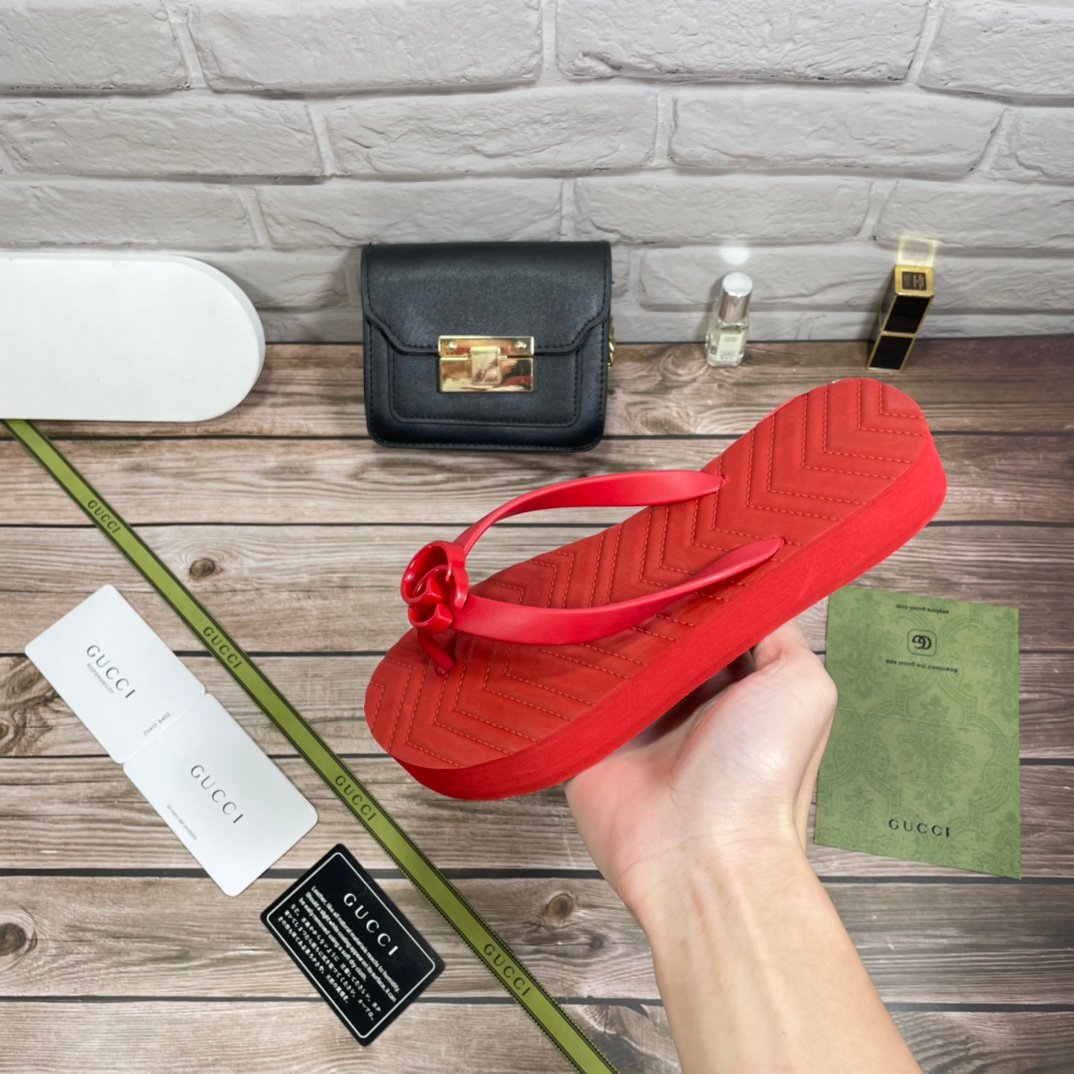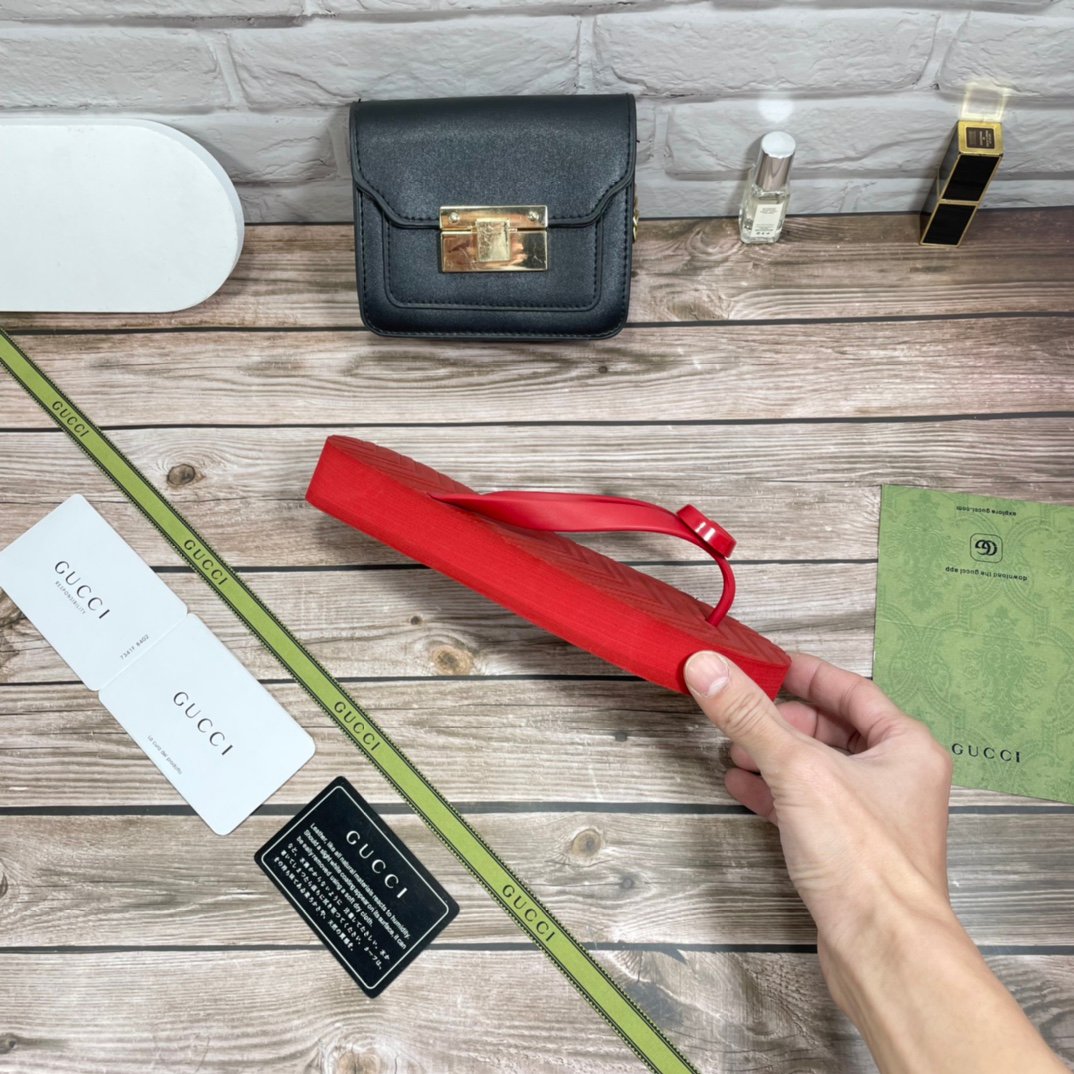 1:1 REPLICA SHOES Red chevron pattern rubber insole Women?s Resin Double G Flatform rubber sole
