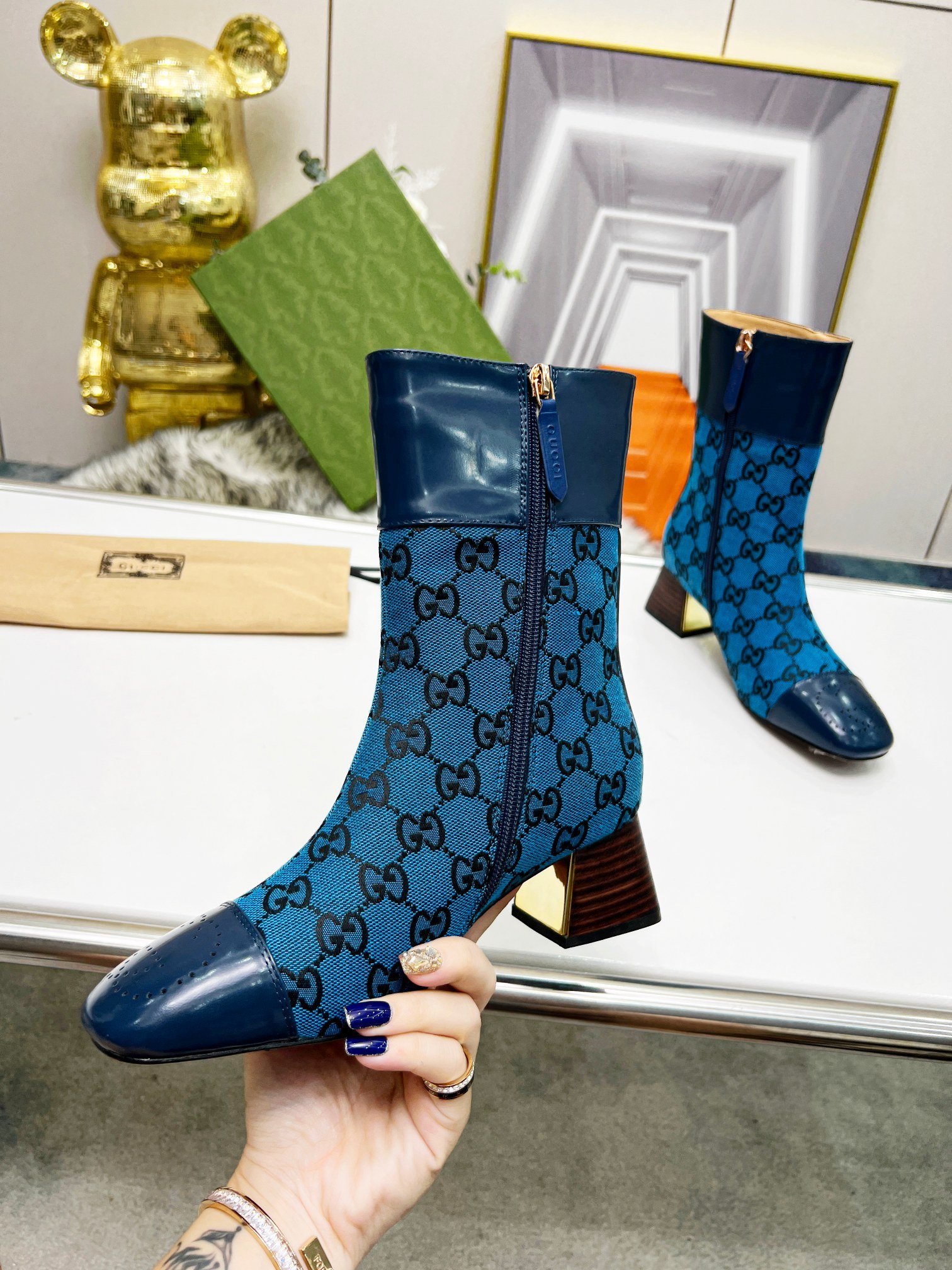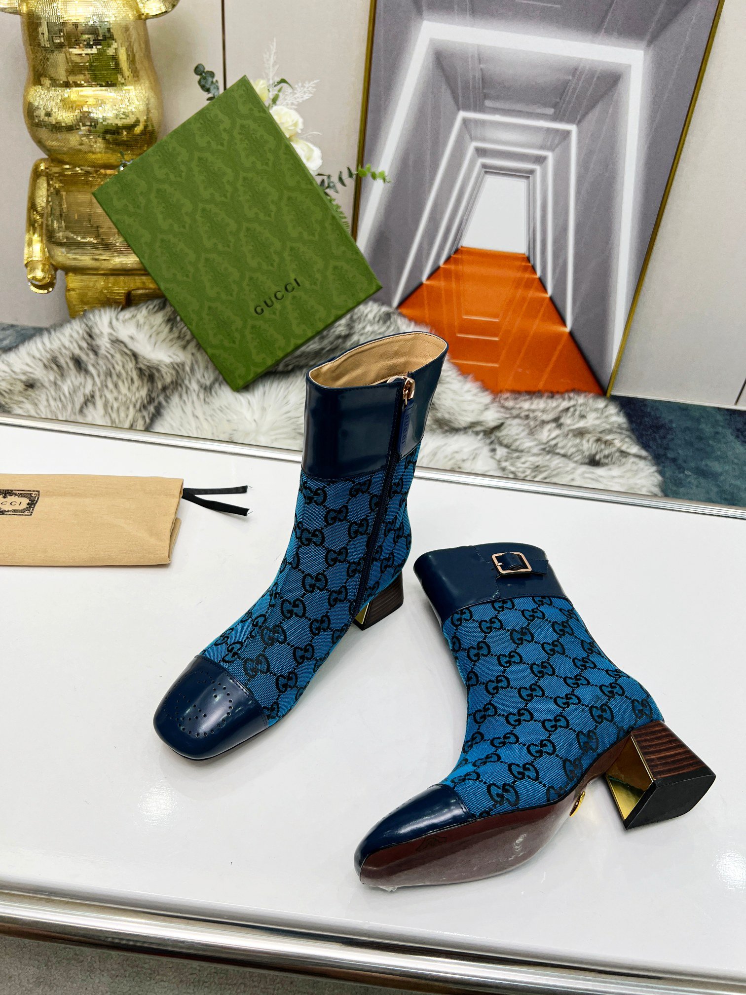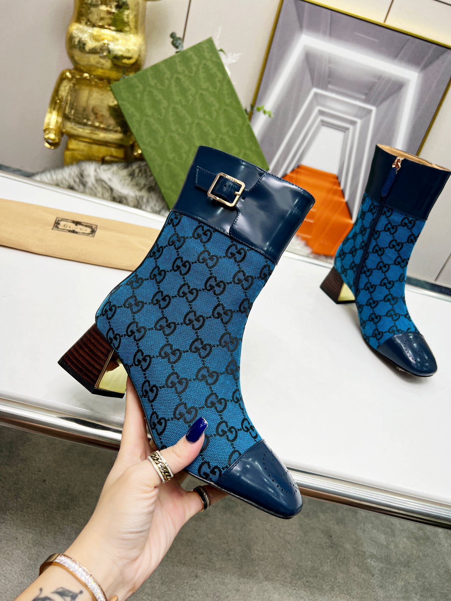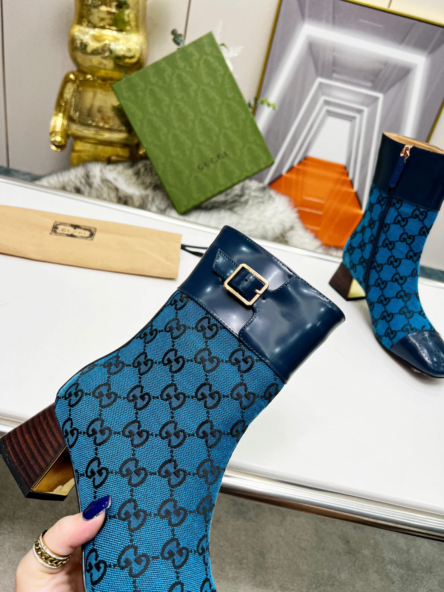1:1 REPLICA SHOES Ebony GG canvas Women’s Cuir leather trim Logo buckle detail Perforated Interlocking G detail Leather sole Low heel