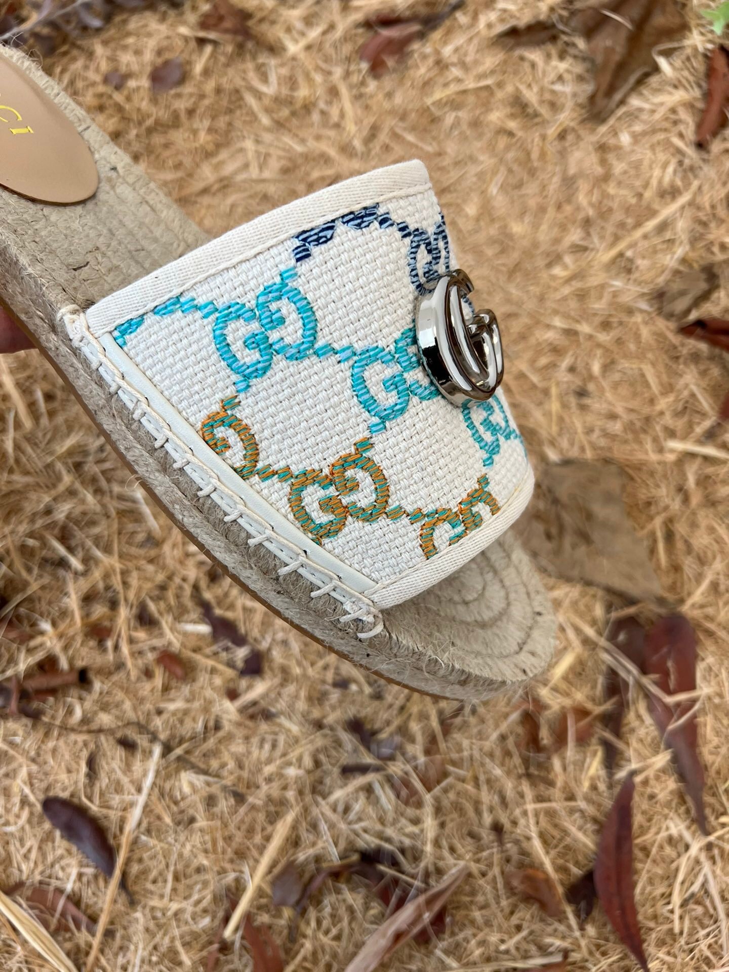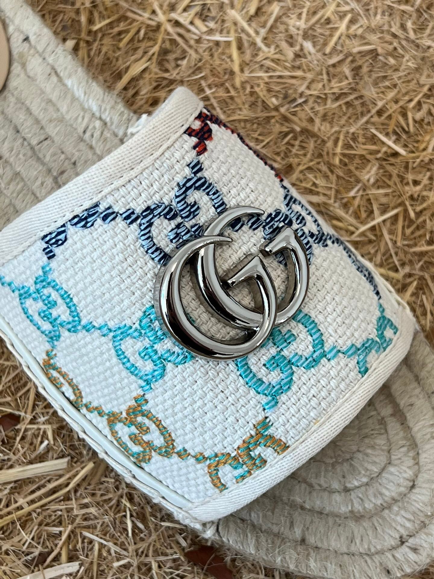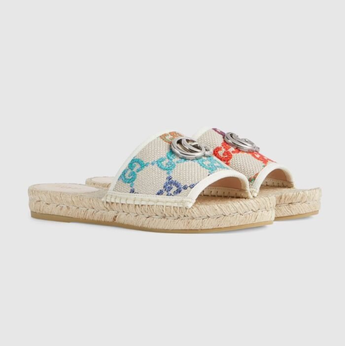 1:1 REPLICA SHOES Multicolor GG linen canvas Women’s Cord platform with rubber bottom