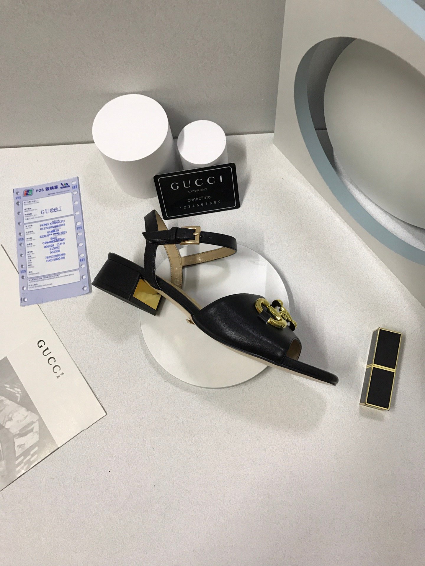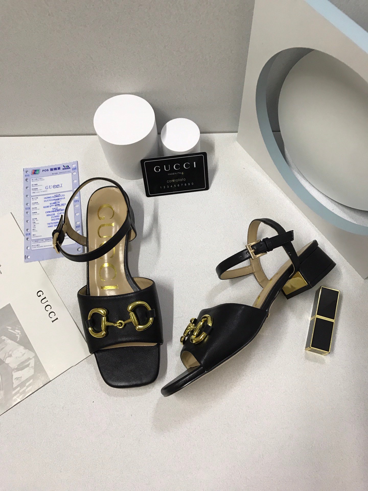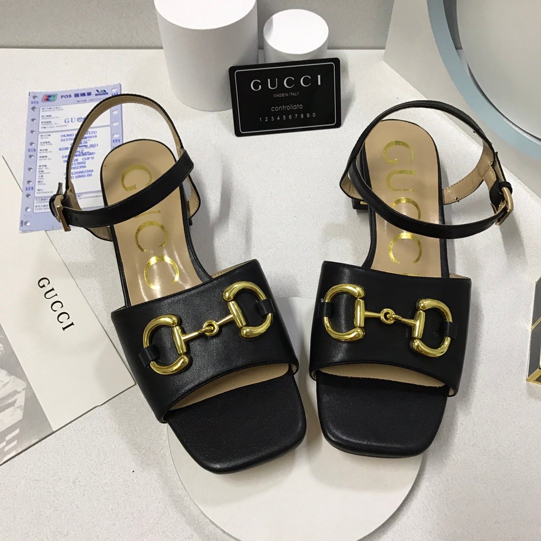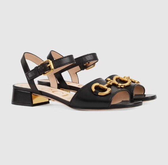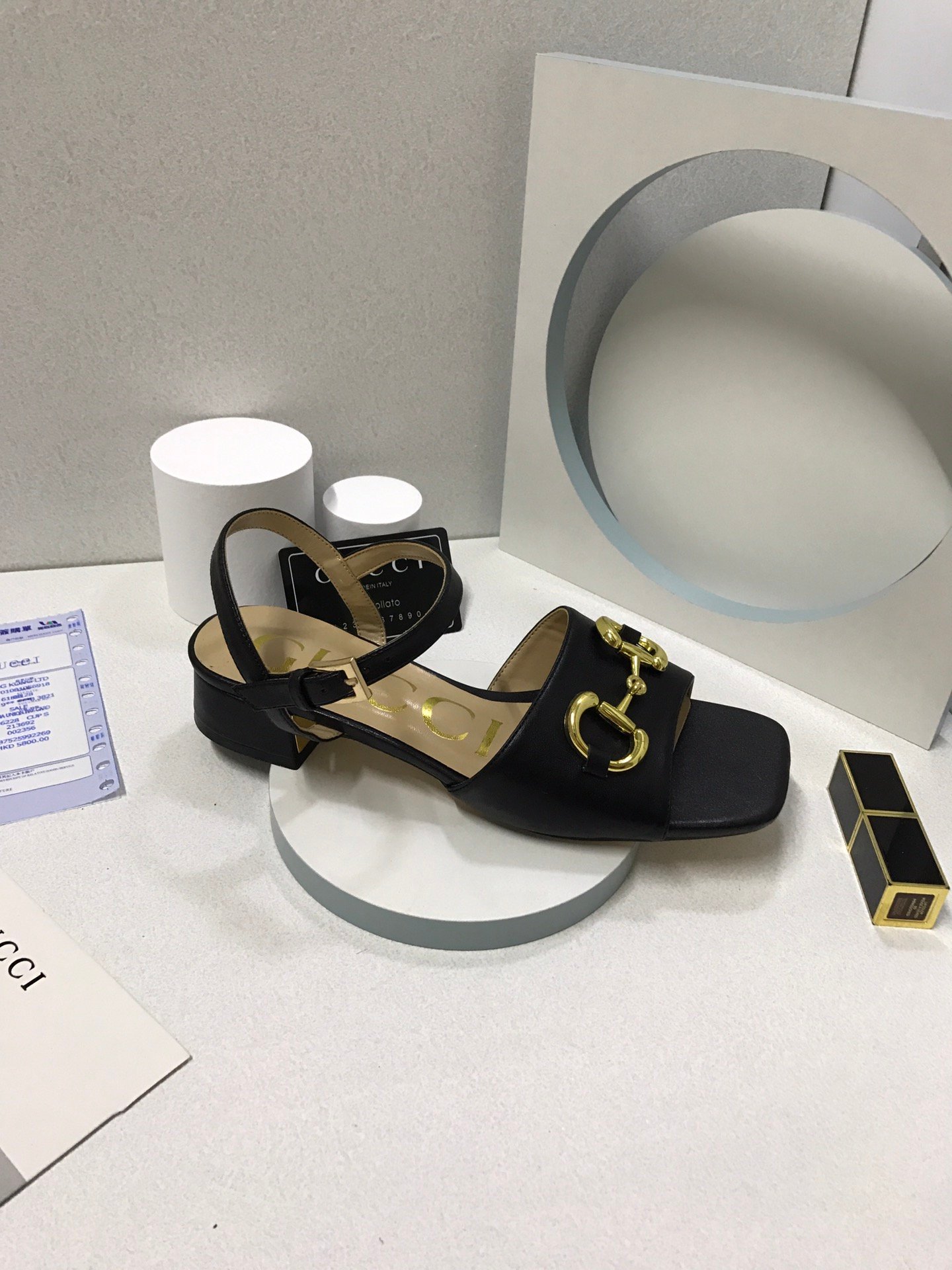 1:1 REPLICA SHOES Black leather Women’s Gold-toned hardware Horsebit Metal detail at heel Leather sole Ankle buckle closure Low heel
